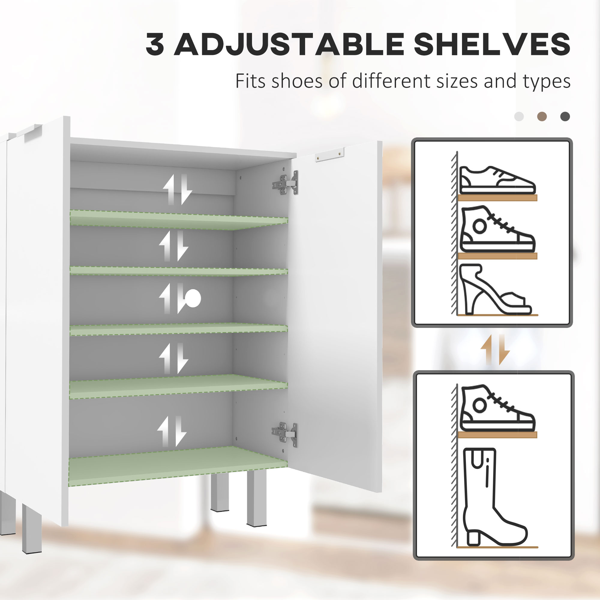 Safeguard all footwear with this HOMCOM shoe cabinet. This large storage piece features five inner shelves, which in total hold up to 20 shoe pairs, maximum size UK 9. Made from particle board, this shoe storage unit is a sturdy piece - suitable for everyday use. Finished in a white hue, it is easy to match with plenty of other pieces - an effortless addition to your furniture collection.