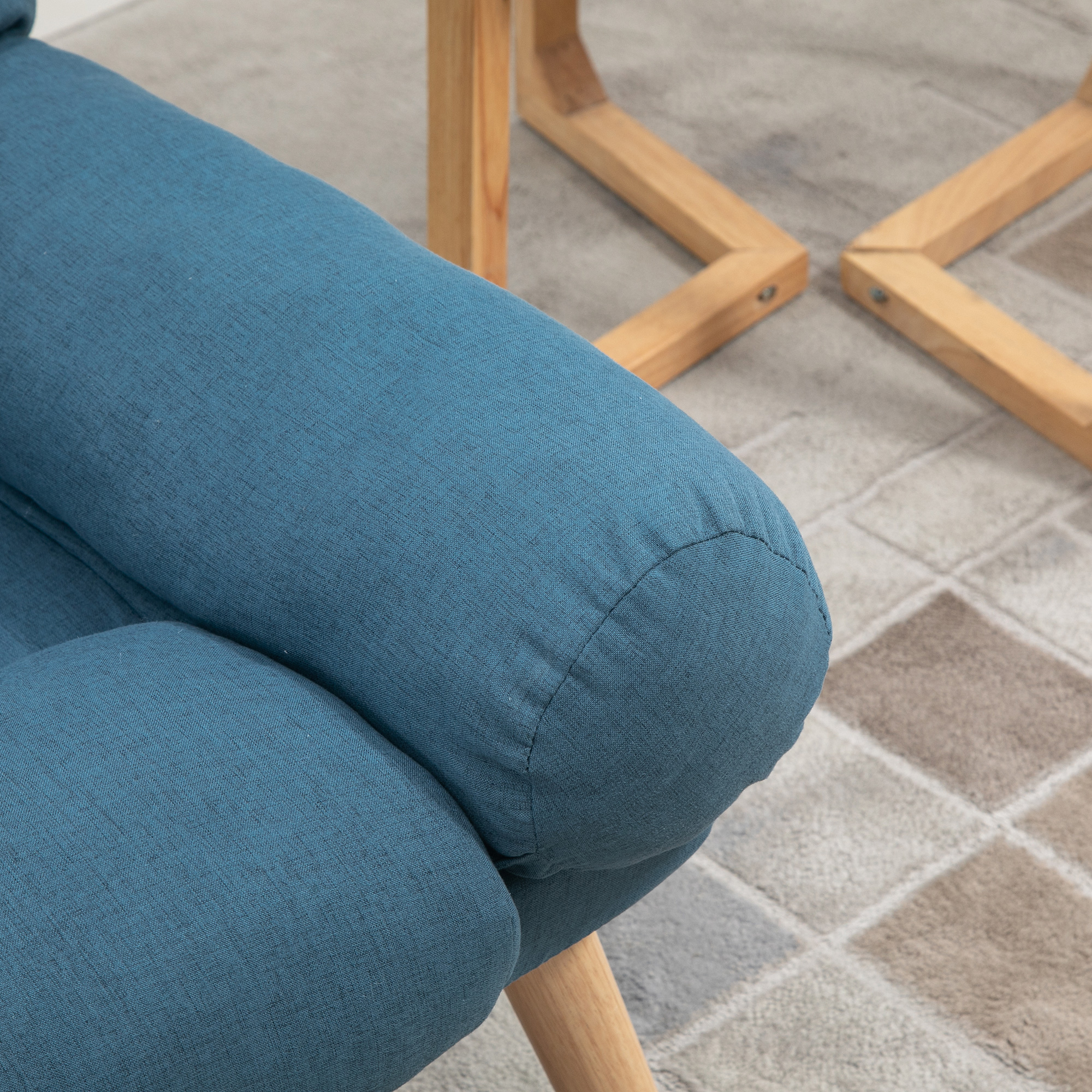 Stylish and comfortable, this HOMCOM recliner chair and ottoman is the perfect addition - for every home and office space. It's a blue matching set, in a cool square shape, that'll add a modern touch to your home, whilst giving you the opportunity to put your feet up and relax. The back reclines to 110°, 150° and 180°: sit back to a position you want. Complete with wooden legs for strong support.