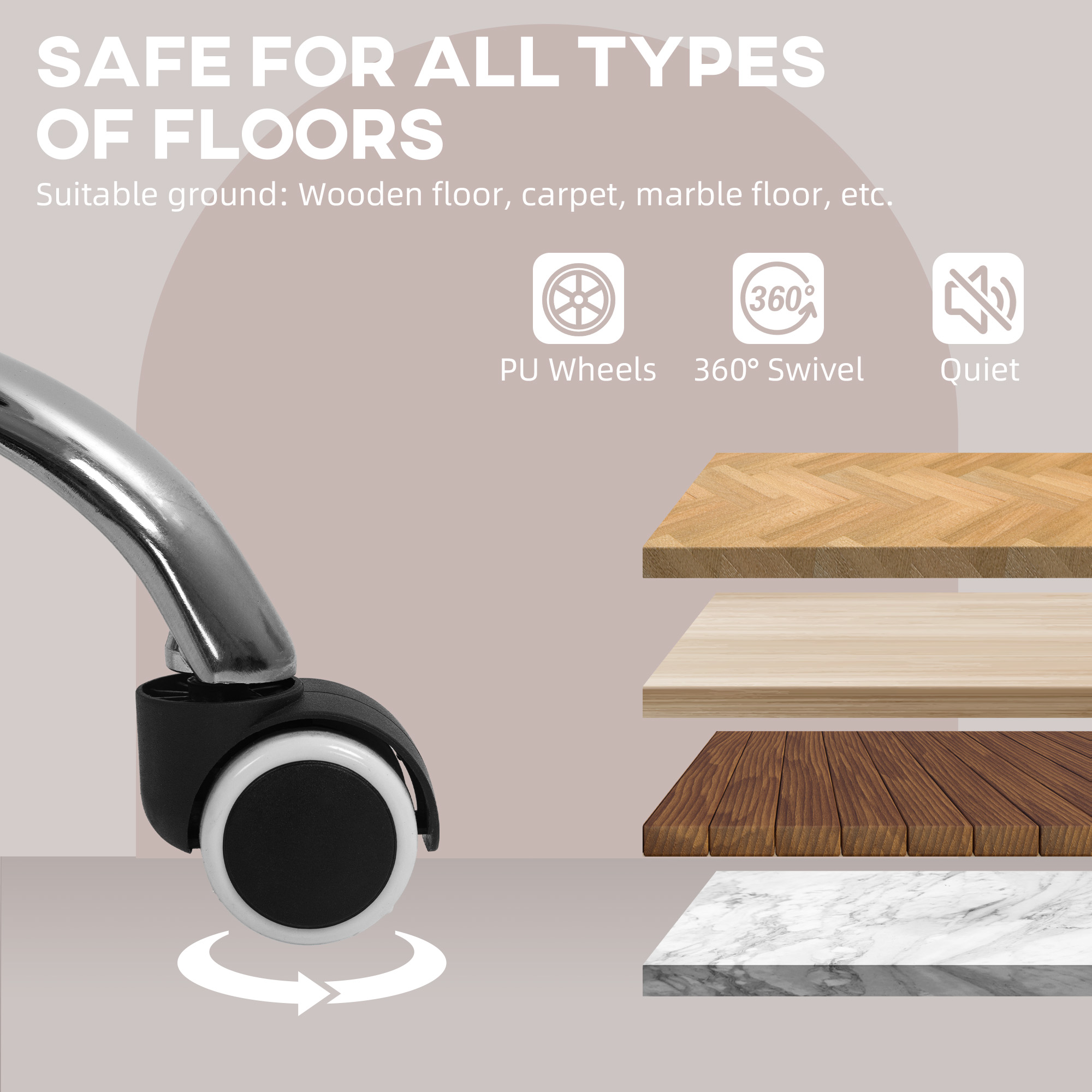 Soft sophistication comes into the everyday with this HOMCOM desk chair. Wrapped in velvet-feel upholstery, this looks and feels great; filled with sponge and comes with a padded seat cushion for comfort. The high back and armrests are supportive. You can adjust the height between 84-97 cm to allow you to sit at a level on par with your desk. This comfy office chair is complete with five wheels to move around easily.