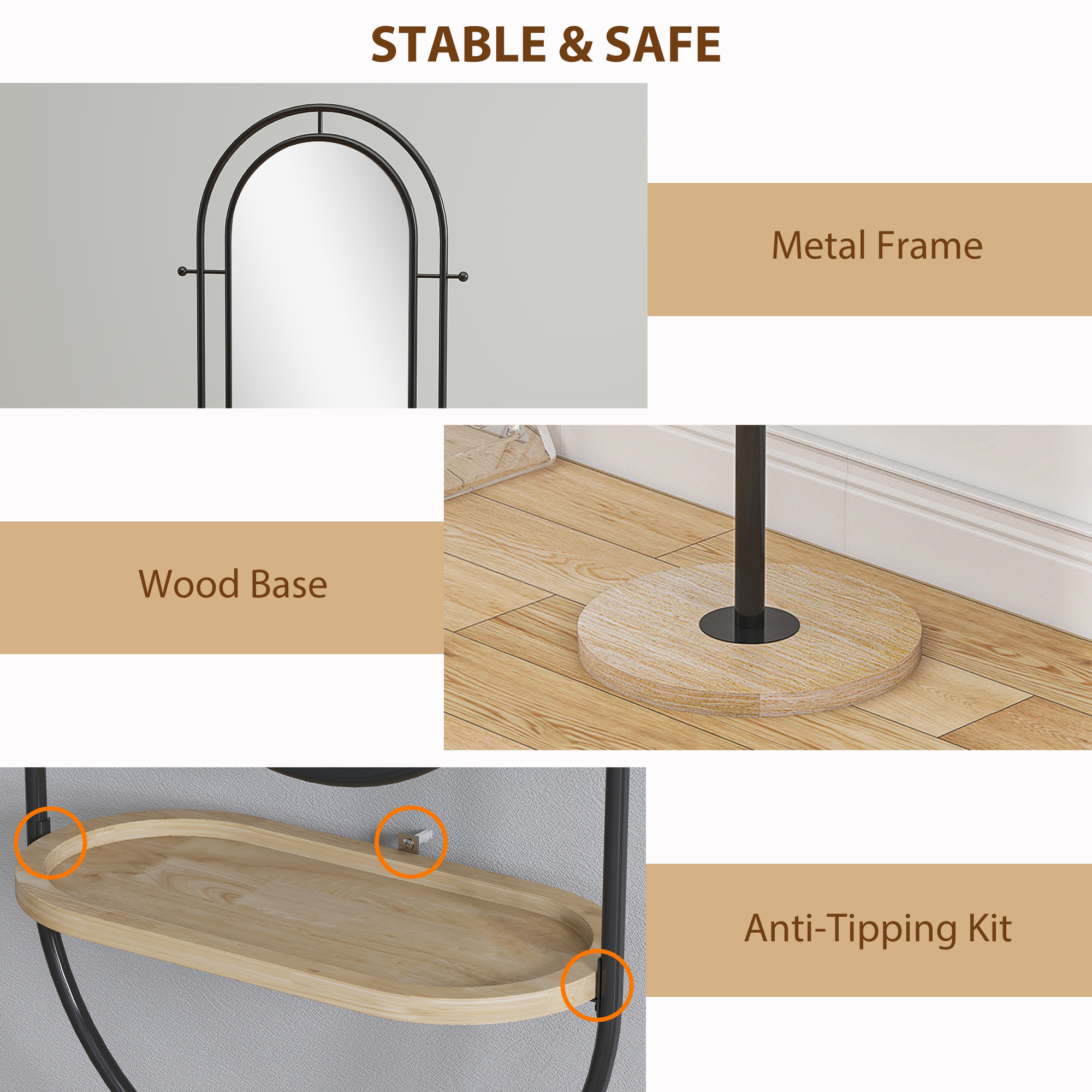 Discover your reflection anew with the HOMCOM floor mirror, a captivating addition to any room. This long mirror combines high-definition glass with a shatterproof film for peace of mind. Featuring a unique, dual-oval shape with an elegant metal frame and a handy wooden tray, it's an essential piece for any bedroom or living space.