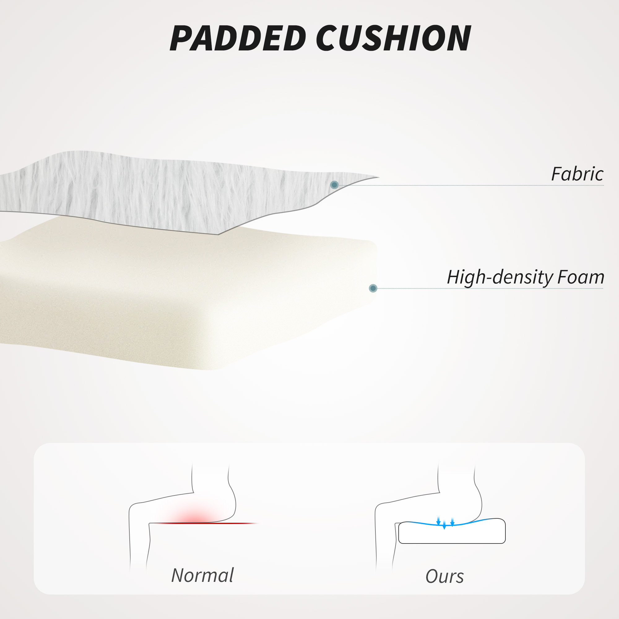 Upgrade your workspace with the HOMCOM home office chair. Wrapped in plush fabric for a stylish touch, it works great as a home office or vanity chair. A curved back and high-density sponge offer comfort and support, while the seat adjusts from 42–50cm and swivels 360° with ease. A sleek blend of form and function — suitable for study spaces or PC setups.