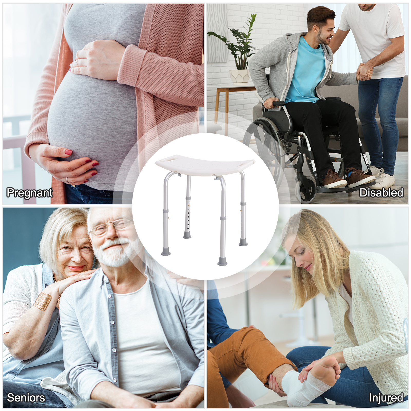 - Shower stool allows individuals, with limited mobility or injury to sit during shower independently