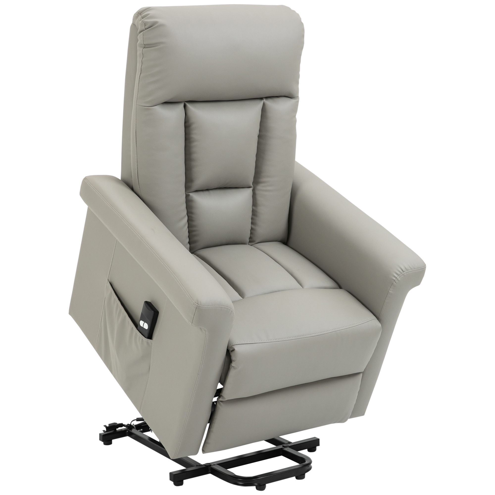 Make life easier with this HOMCOM power lift recliner. By a touch of the included remote, you can go from a standing position to a reclined position effortlessly. Generously padded upholstery allows you to sink in, wrapped in sleek faux leather upholstery for an executive look. The steel frame makes a strong and fully supportive core.