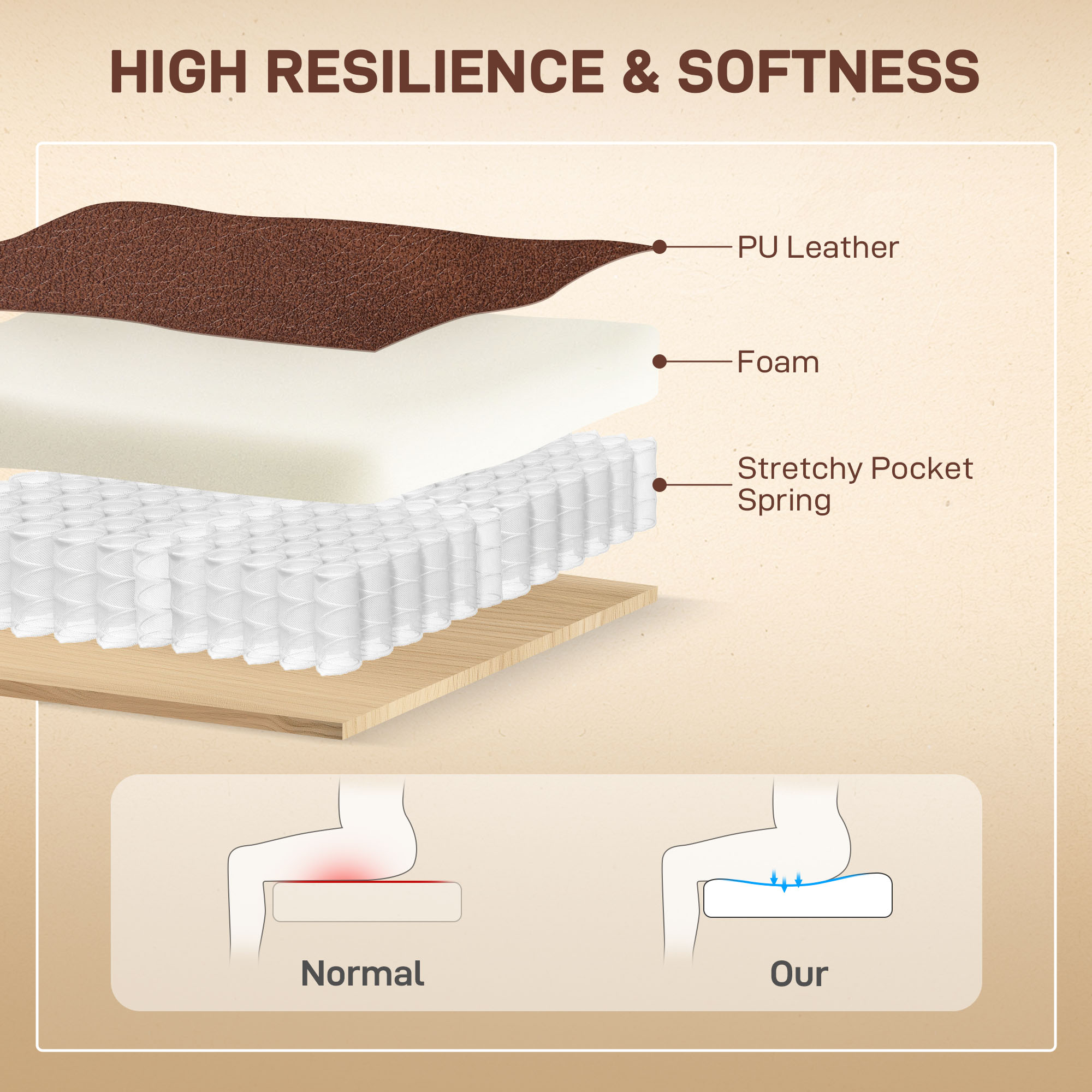 - Material: PU Leather, Foam, Metal