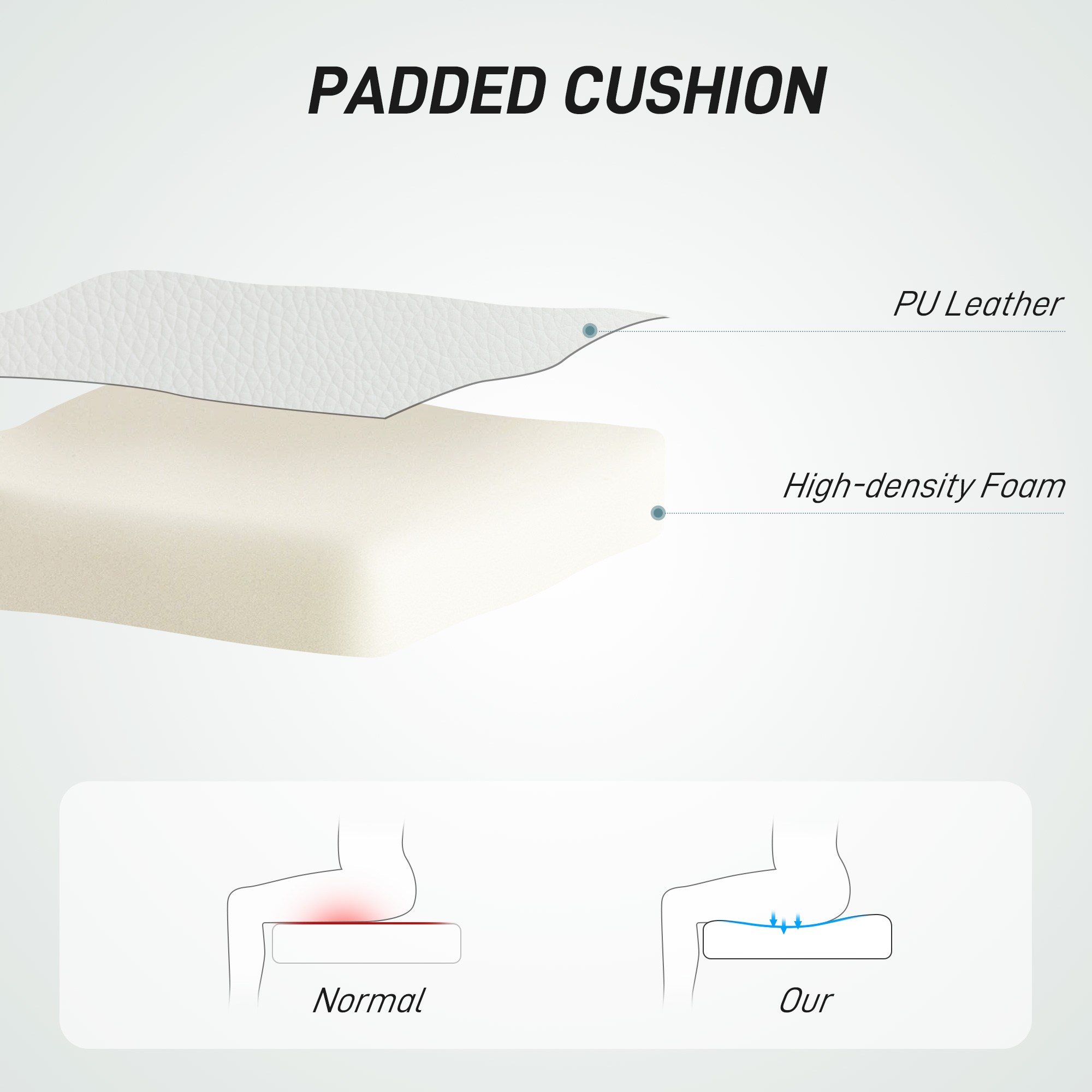 - Materials: PU Leather, Foam, Steel