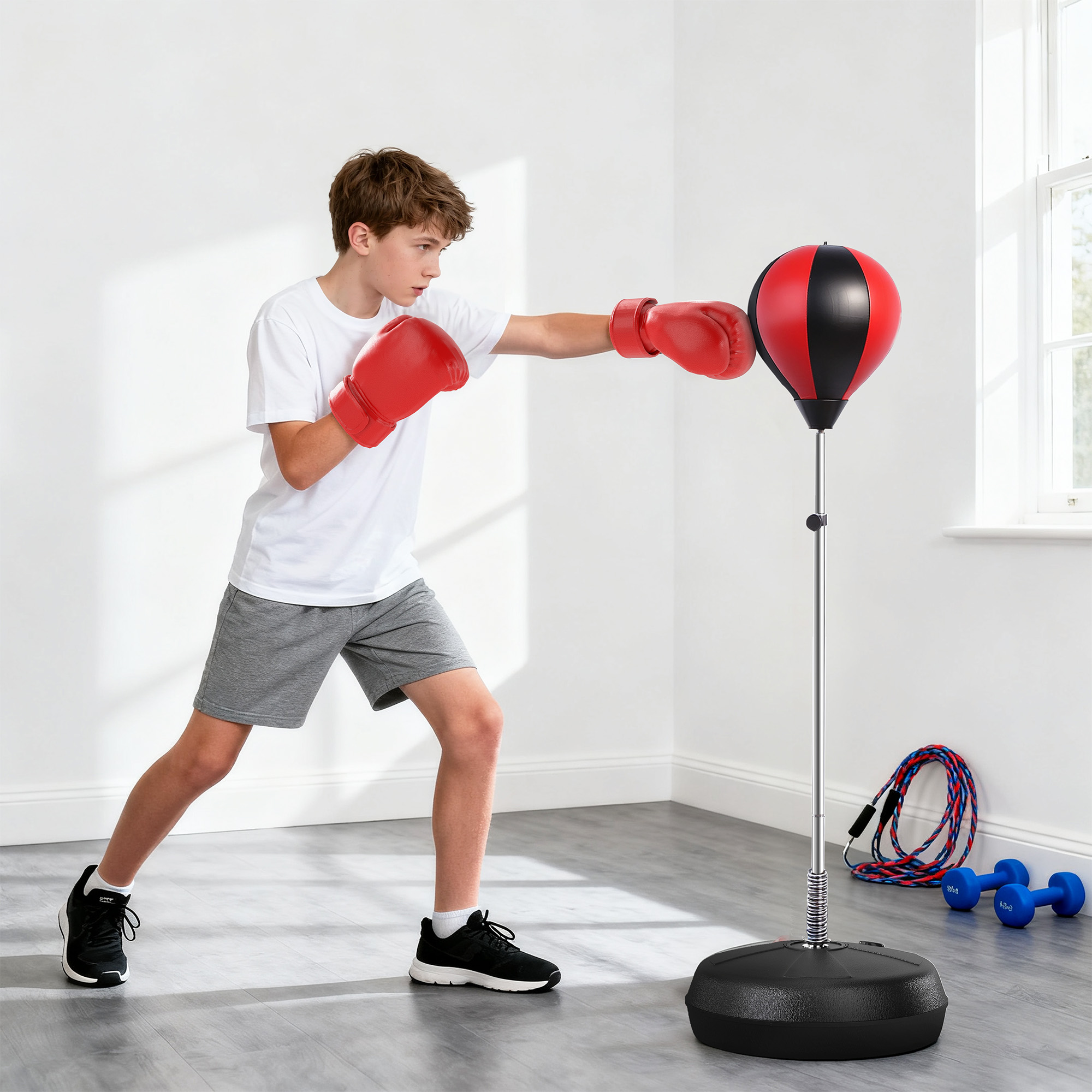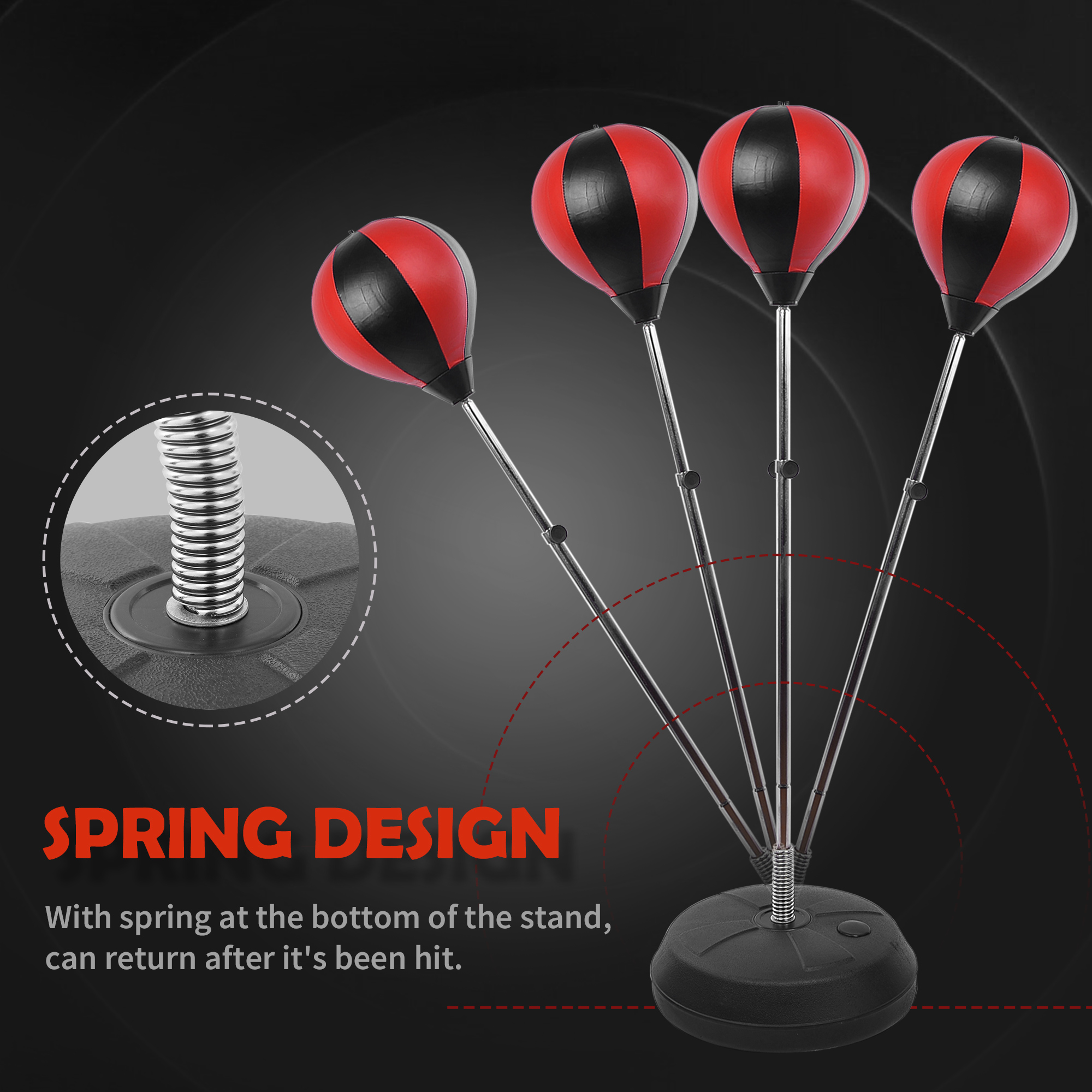 - Steel rod is adjustable in height, with an inflatable punching bag fitted on the top for easy storage