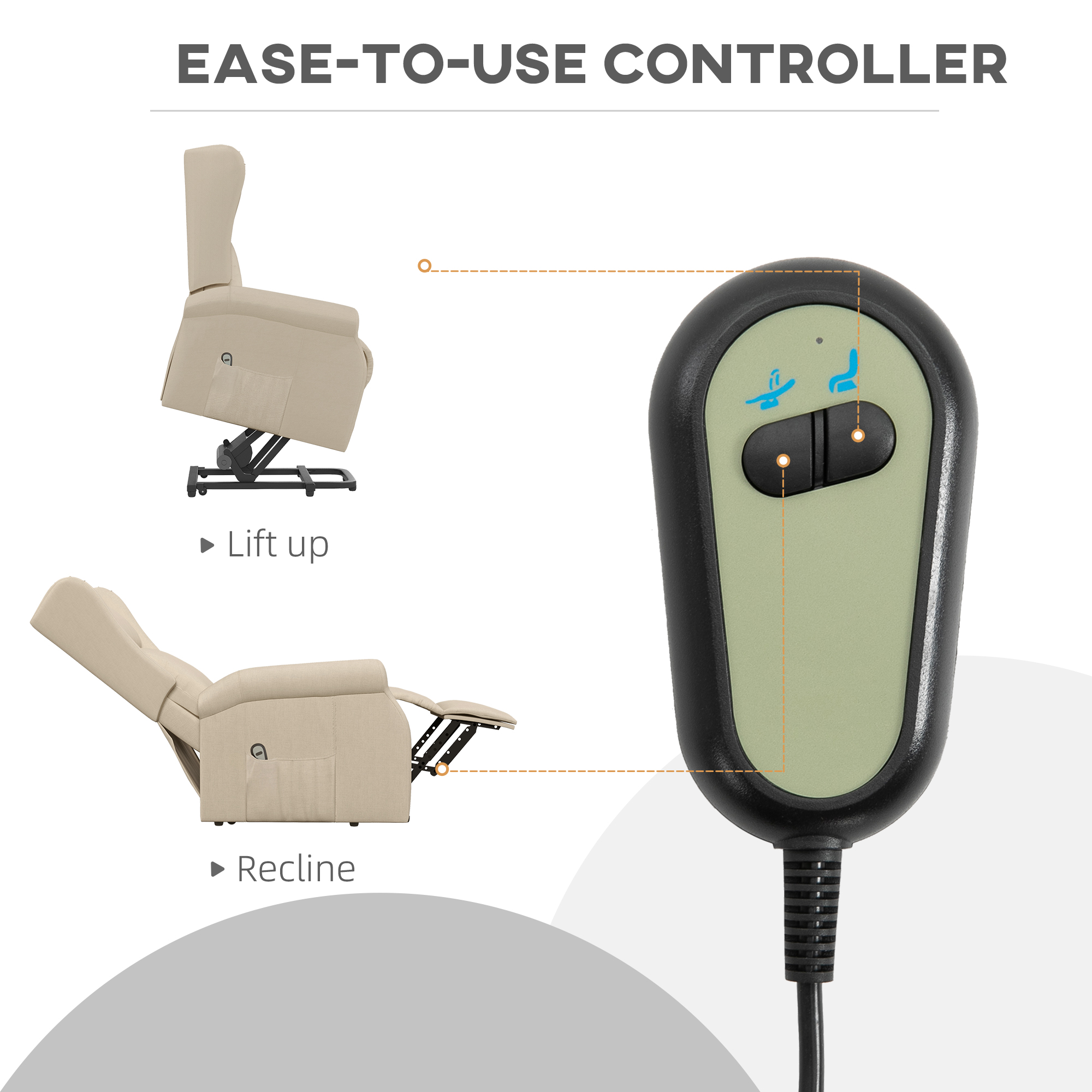 Bring assistance into your life whilst keeping your independence: look to this HOMCOM lift-up armchair. Steel forms the frame for a strong structure which supports up to 200 kg. Thickly padded all over to keep you comfortable, it features a 135° reclining back and footrest: control them with the remote to set chair in a position you want. The gentle lifting angle makes it easy to sit down and get out of the chair. Finished with smooth linen-look upholstery.