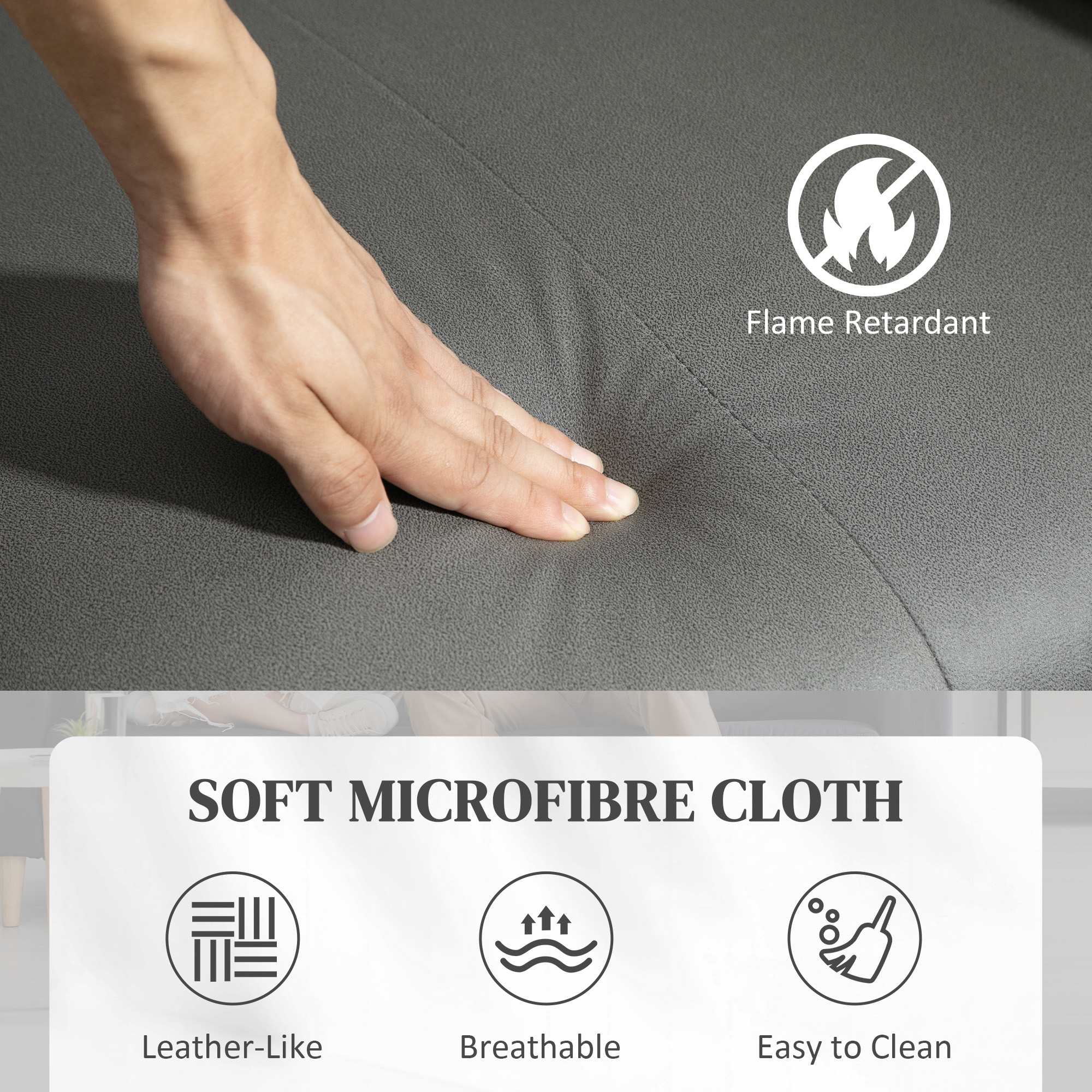 - Leather-like microfibre cloth is sofa and breathable