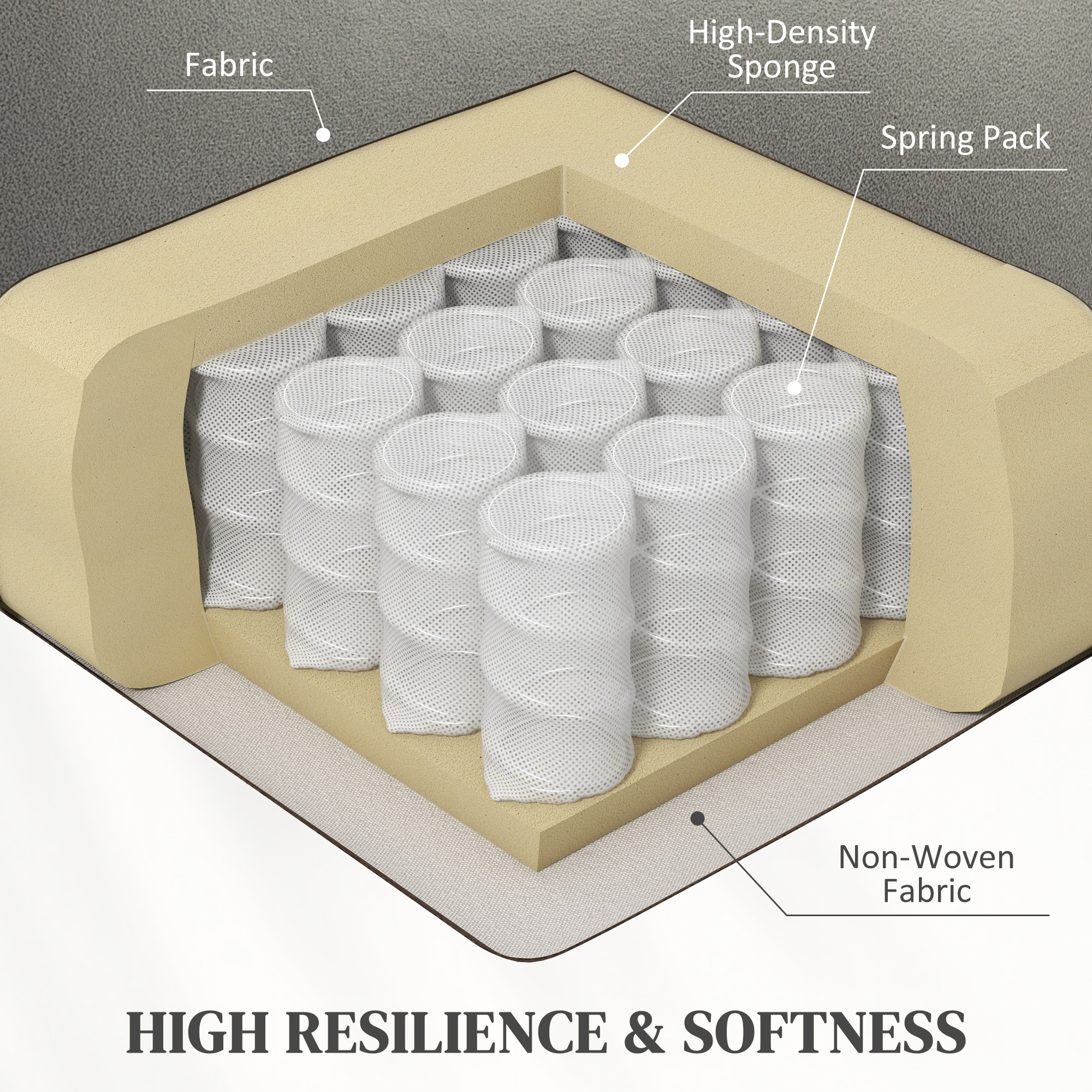 - Pocket spring seat paired with high-density sponge for support