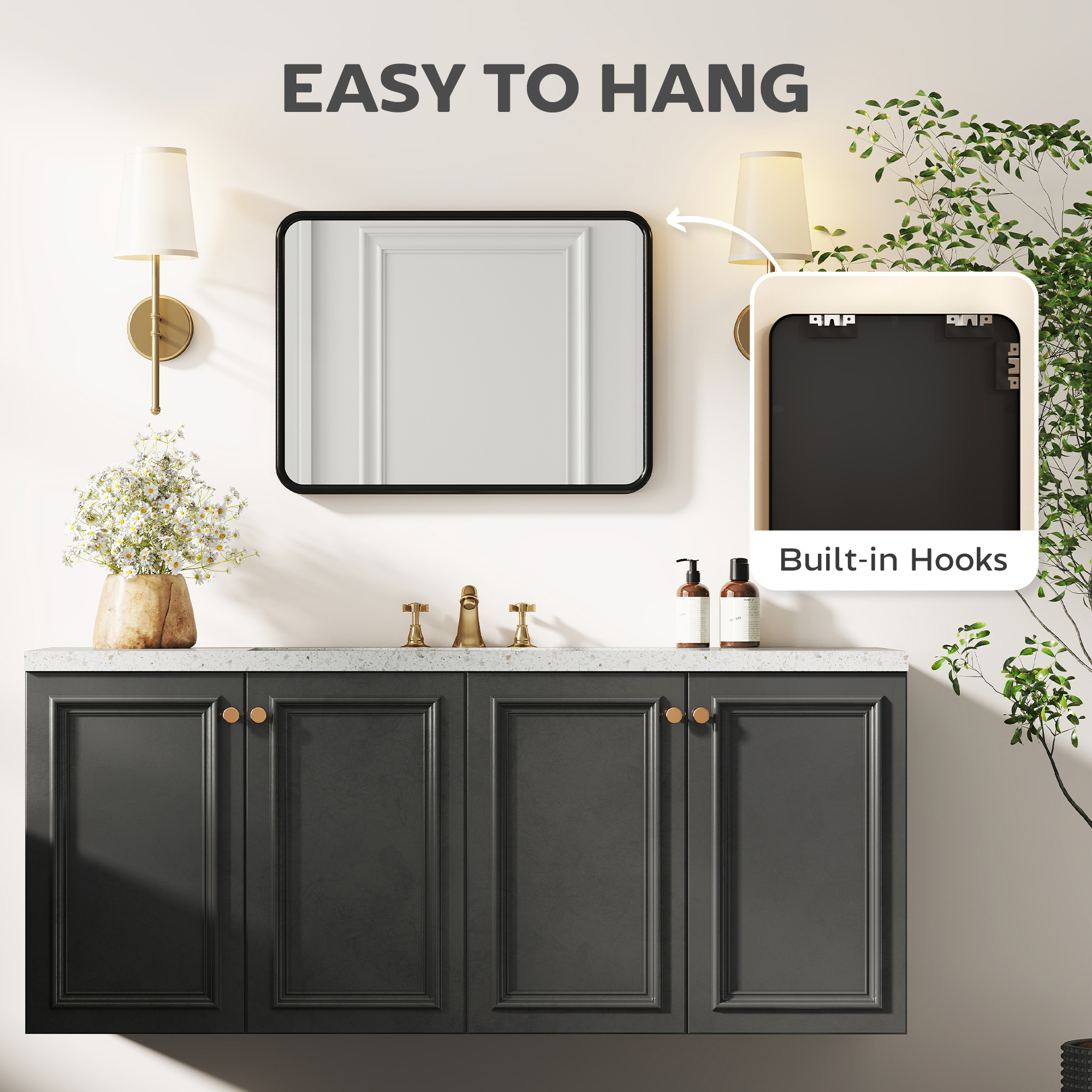 Tired of flimsy mirrors that dictate your decor? Finding that right piece that is both stylish and adaptable can be frustrating. This HOMCOM wall mirror offers a solution. Its solid metal frame and backboard ensure a warp-free, long-lasting presence. With dual hanging options, you have the creative freedom to mount it vertically or horizontally, effortlessly elevating your space with a touch of modern elegance and peace of mind.