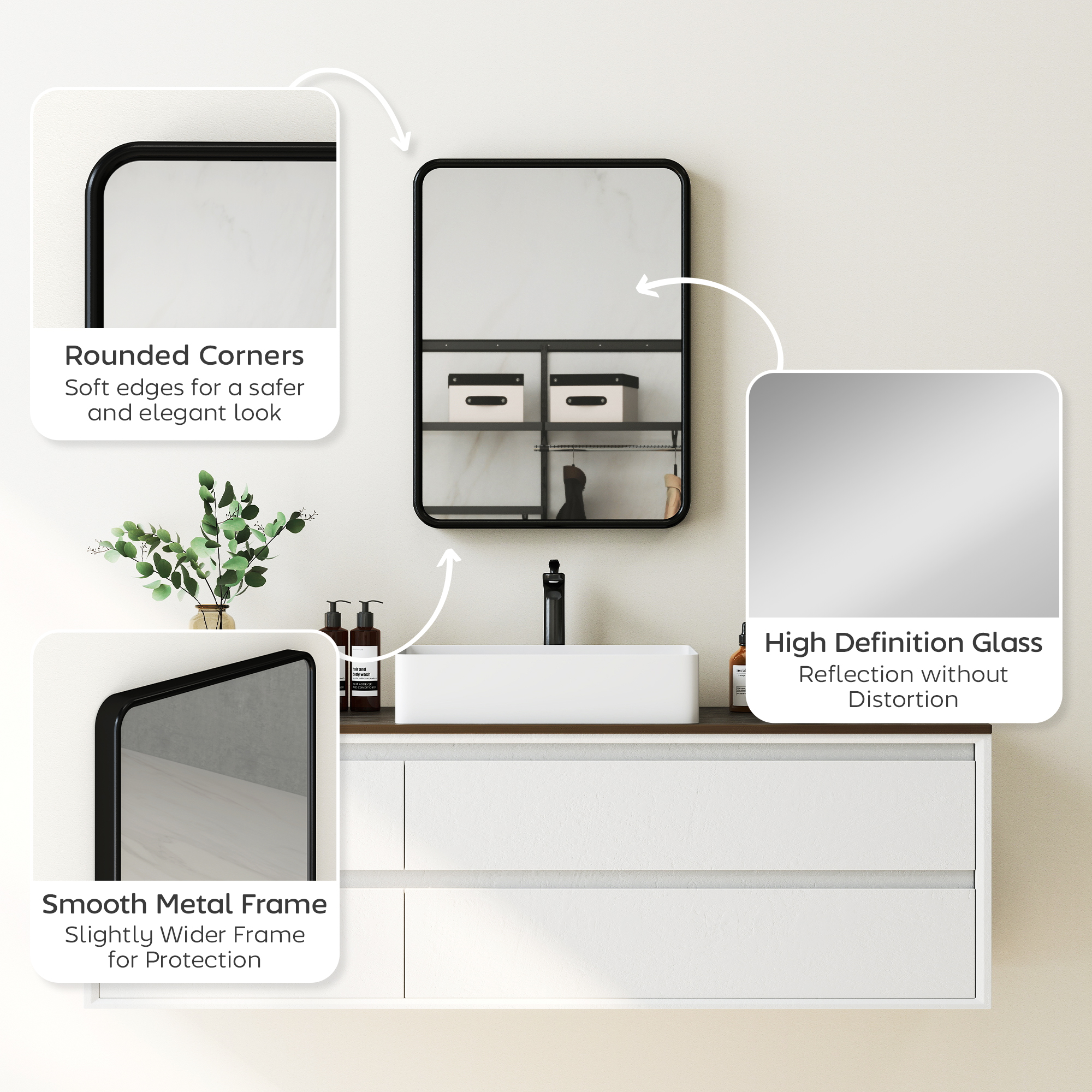 - High-definition glass provides a clear, distortion-free reflection of your true image