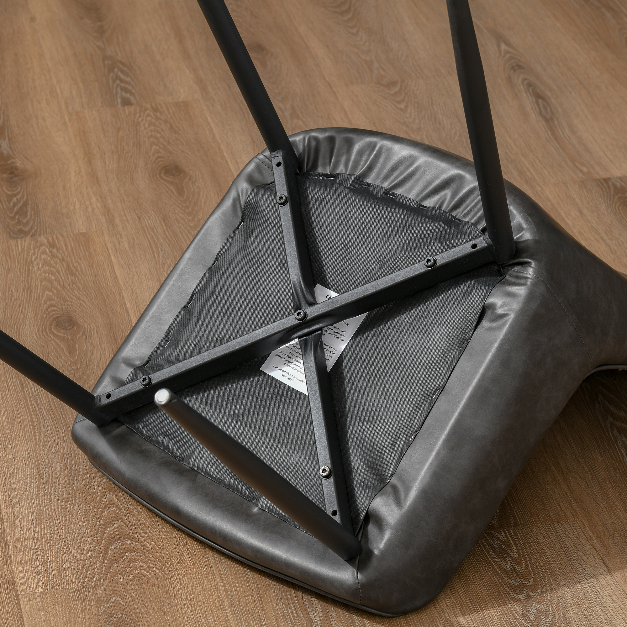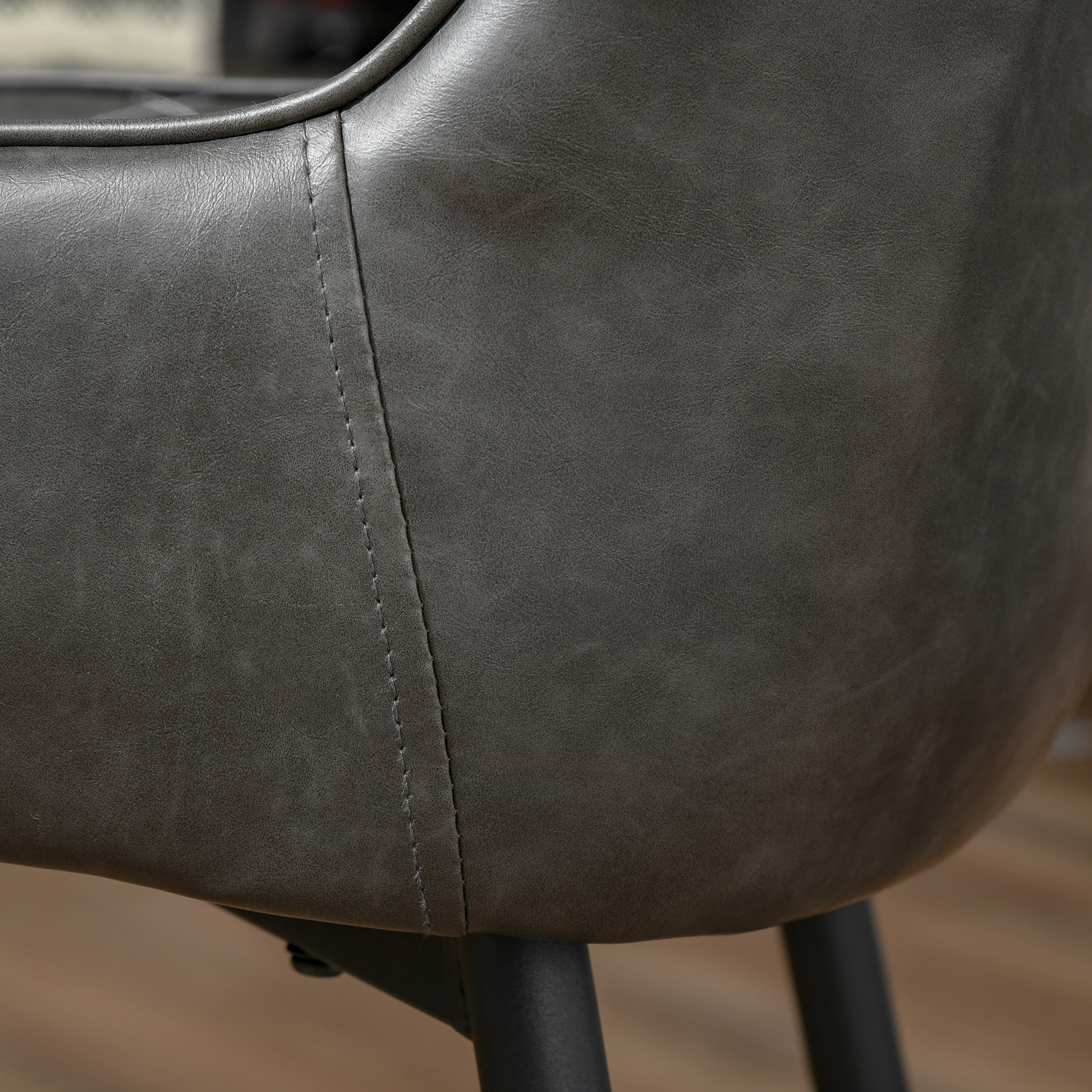 Sit down in cool, unfiltered retro style with these dining chairs from HOMCOM. With steel legs for a sturdy and fully supportive base, each chair is formed into a slightly-armless design for plenty of room when seated: the raised edges and high back help keep your body in line. Both are filled with thick sponge for comfort - the polished PU leather is undeniably cool. Finished with protective foot pads.