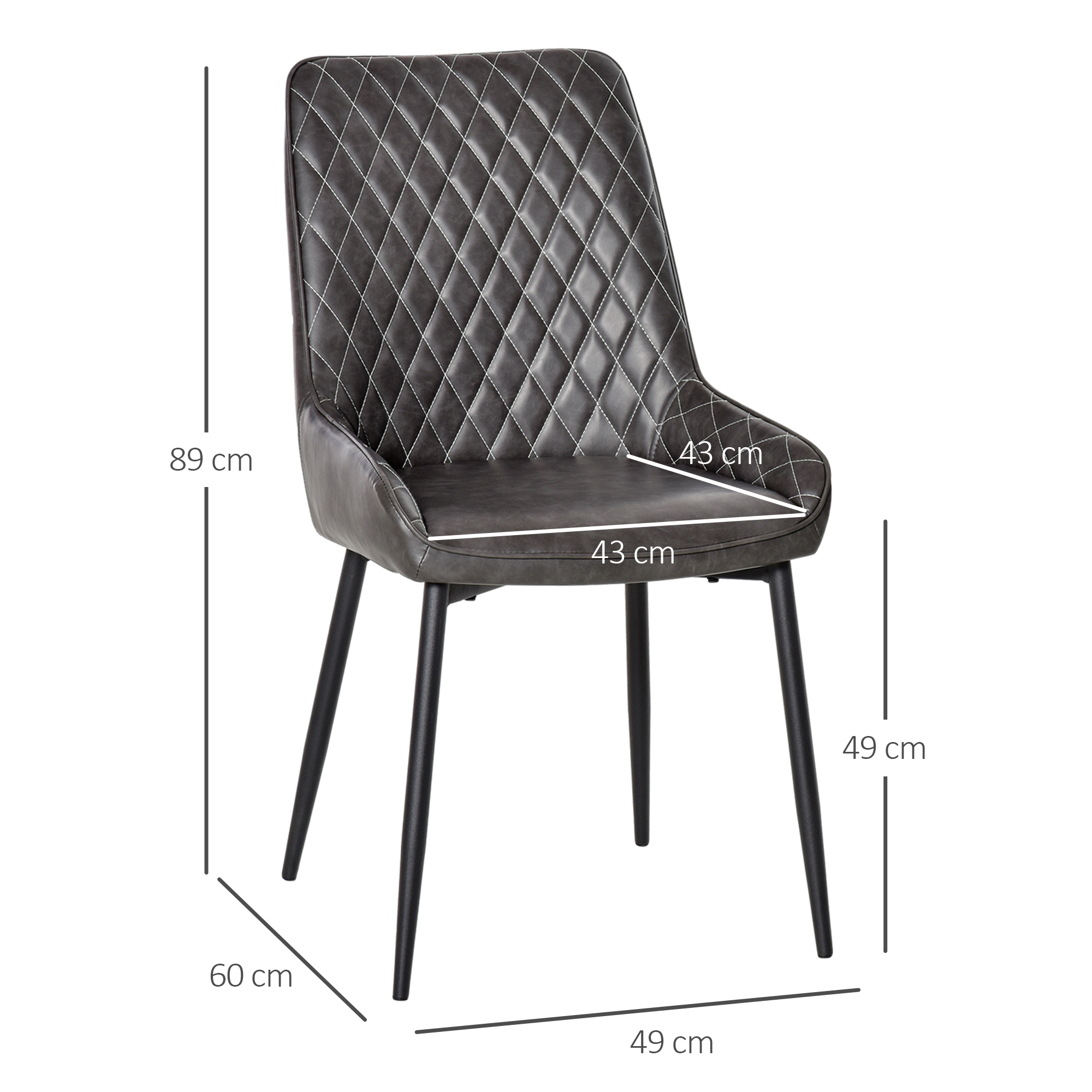 - Dimensions: 89H x 49W x 60Dcm. Seat: 49H x 43W x 43Dcm. Back: 45W x 46Lcm