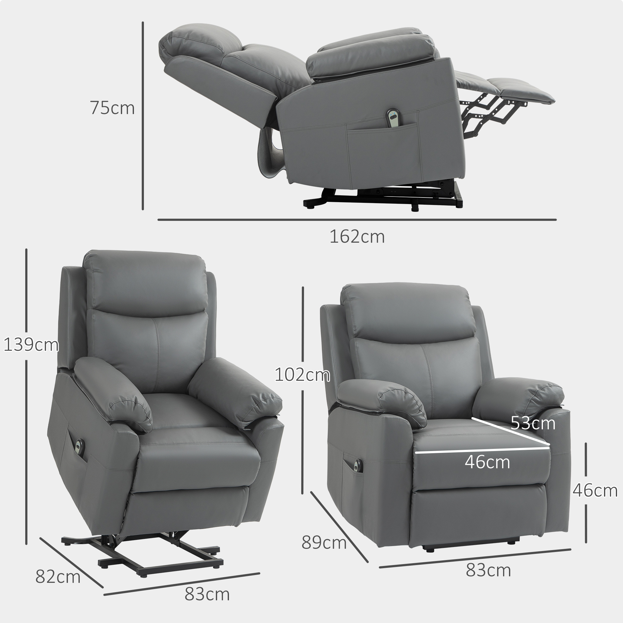 Getting in and out of this HOMCOM recliner chair is easy - thanks to its electric lift up-and-down movement. Gently moves down and lifts up to 70° angle - this electric recliner is ideal for elderly individuals and those who need a little assistance. The back reclines to a maximum 160° angle, with the footrest working in sync; with the thick padding, this is a super comfortable and customisable design suitable for plenty of tasks. Remote included for easy control.