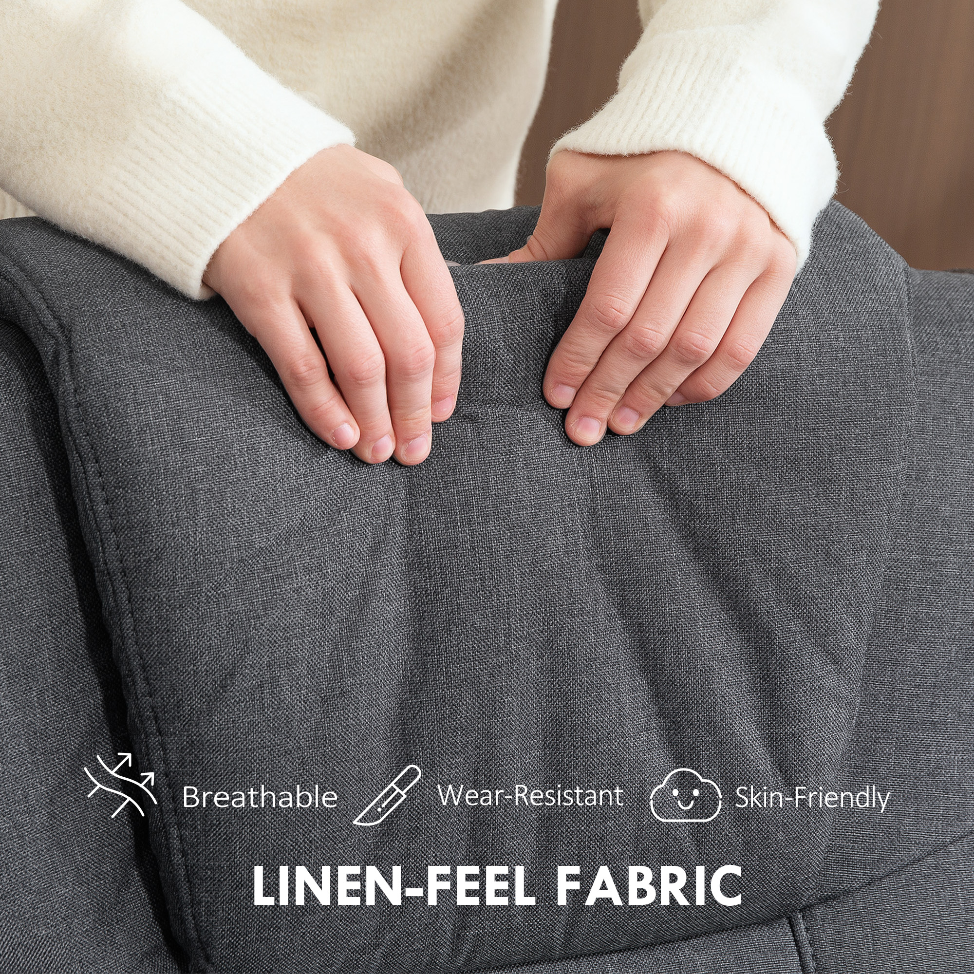 - Linen-look fabric is breathable and wear-resistant