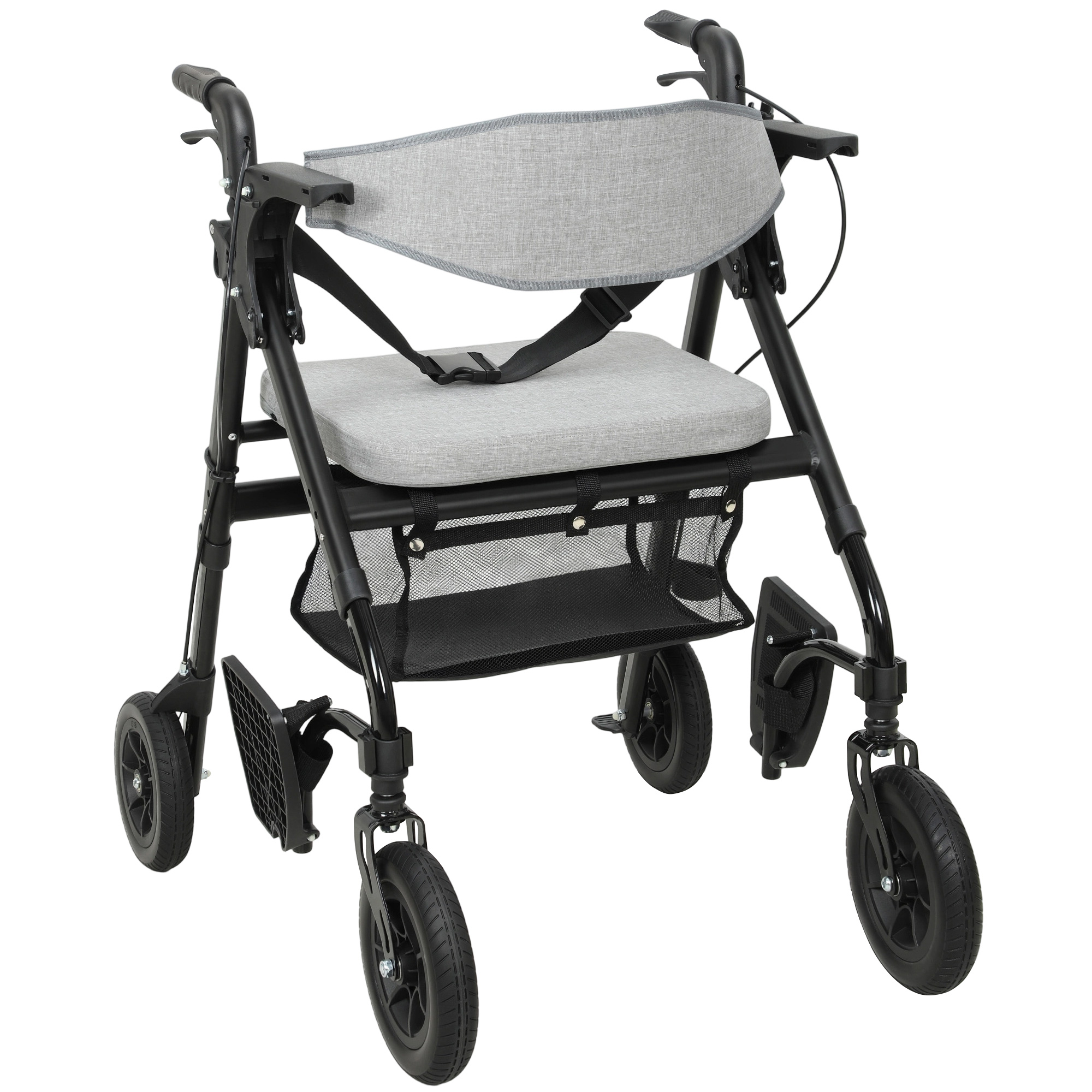 Walk around with support - or sit down and be pushed: do it with this HOMCOM rollator walker. The handle height is adjustable between six positions: this piece is suitable for people between 160–190 cm. Fitted with a wide padded seat and backrest, you can sit and take a break comfortably whenever you need. Made from aluminium, the frame is strong - and can be folded quickly and easily for storage whenever needed.
