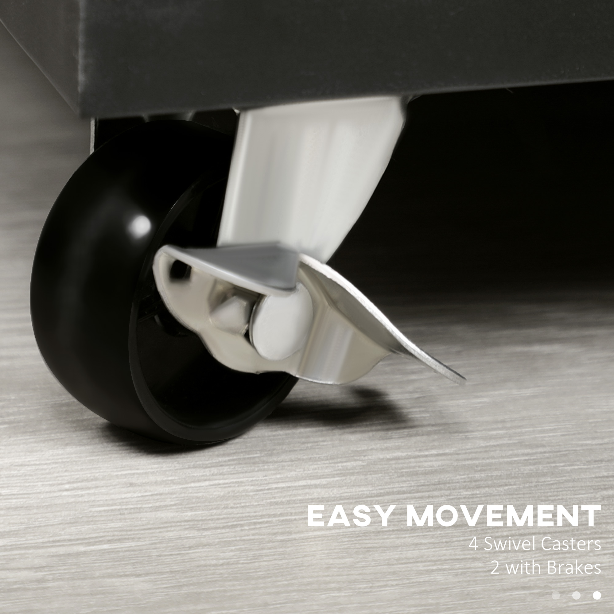 Pure industrial edge for your home or office - this HOMCOM cabinet is cool and quirky. It's a great piece to use as a nightstand, office cabinet or side table, for those looking to do it different this season and beyond. The structure, made from particle board is durable; fitted with a metal door to keep inside guarded. Front air vents for freshness inside. Handle on the front to open the door easily. Completed with four wheels to move around easily.