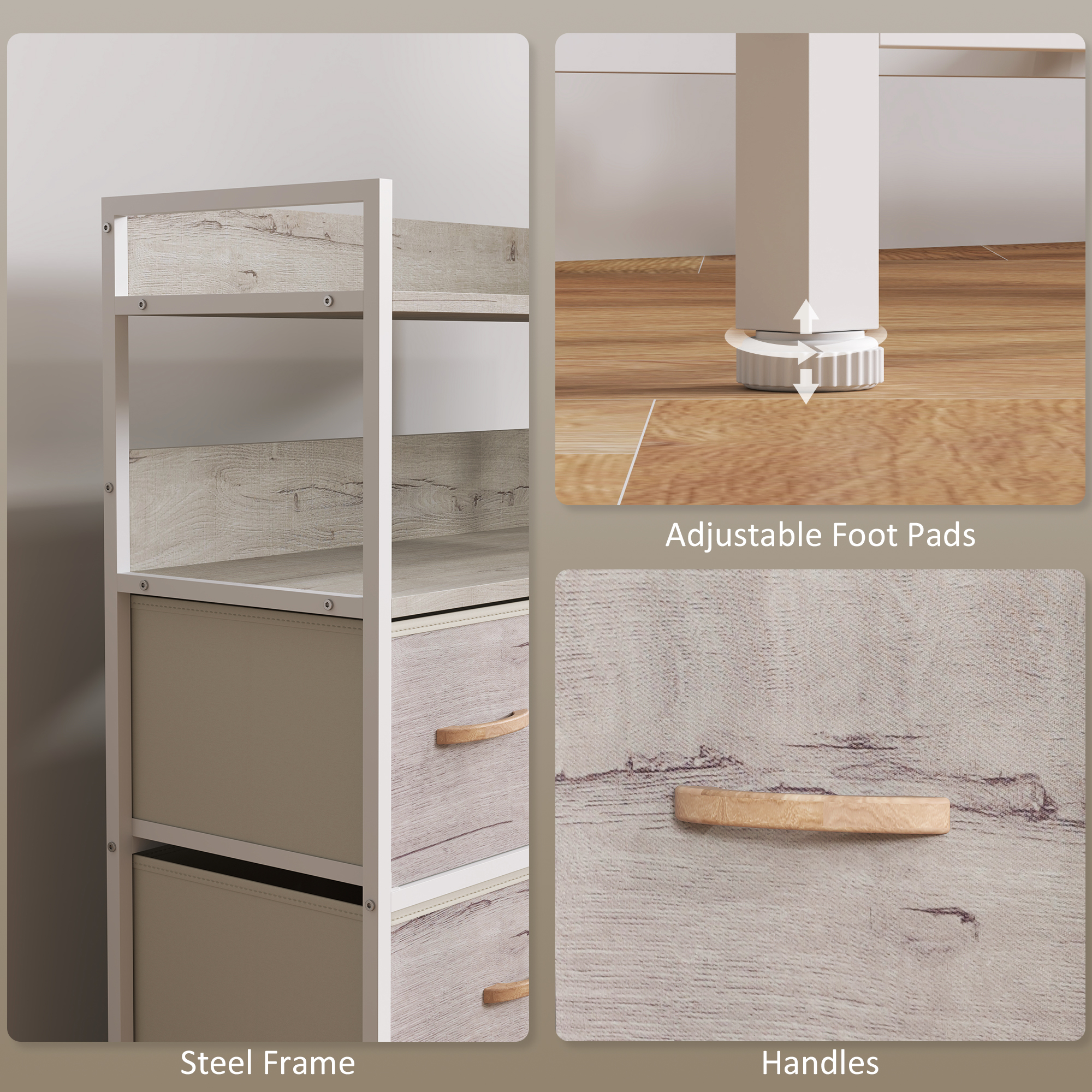 - Weight Capacity: 35kg (overall), 15kg (top), 10kg (middle shelf), 3kg (each drawer)