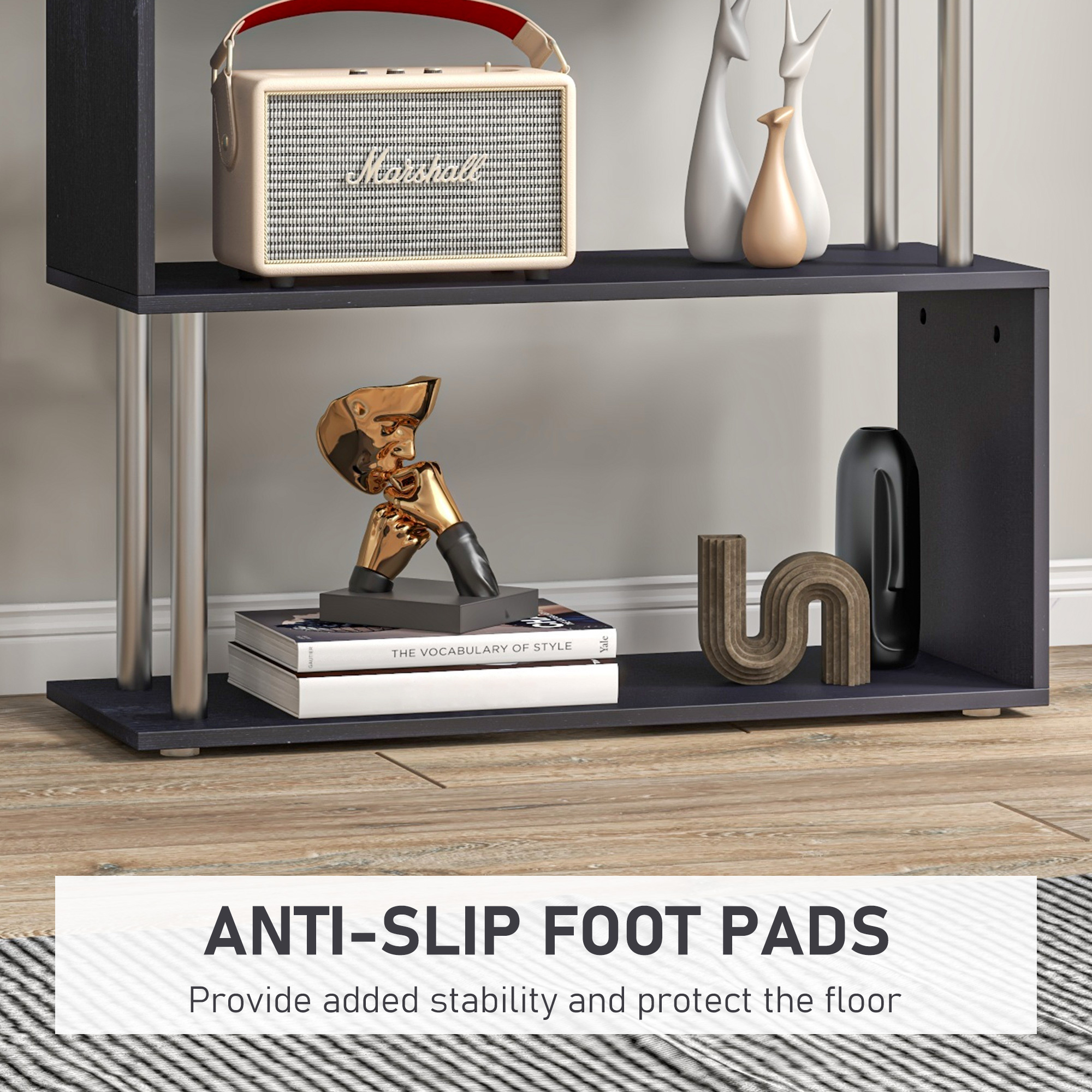 Tired of the same old look? Break away from the norm with the unique and contemporary style of this S-shape bookcase from HOMCOM. Five shelves of storage make it easy to display your favorite books, photos, collectables and more. Best of all, thanks to an open-back design, it doubles as a bookshelf and room divider.