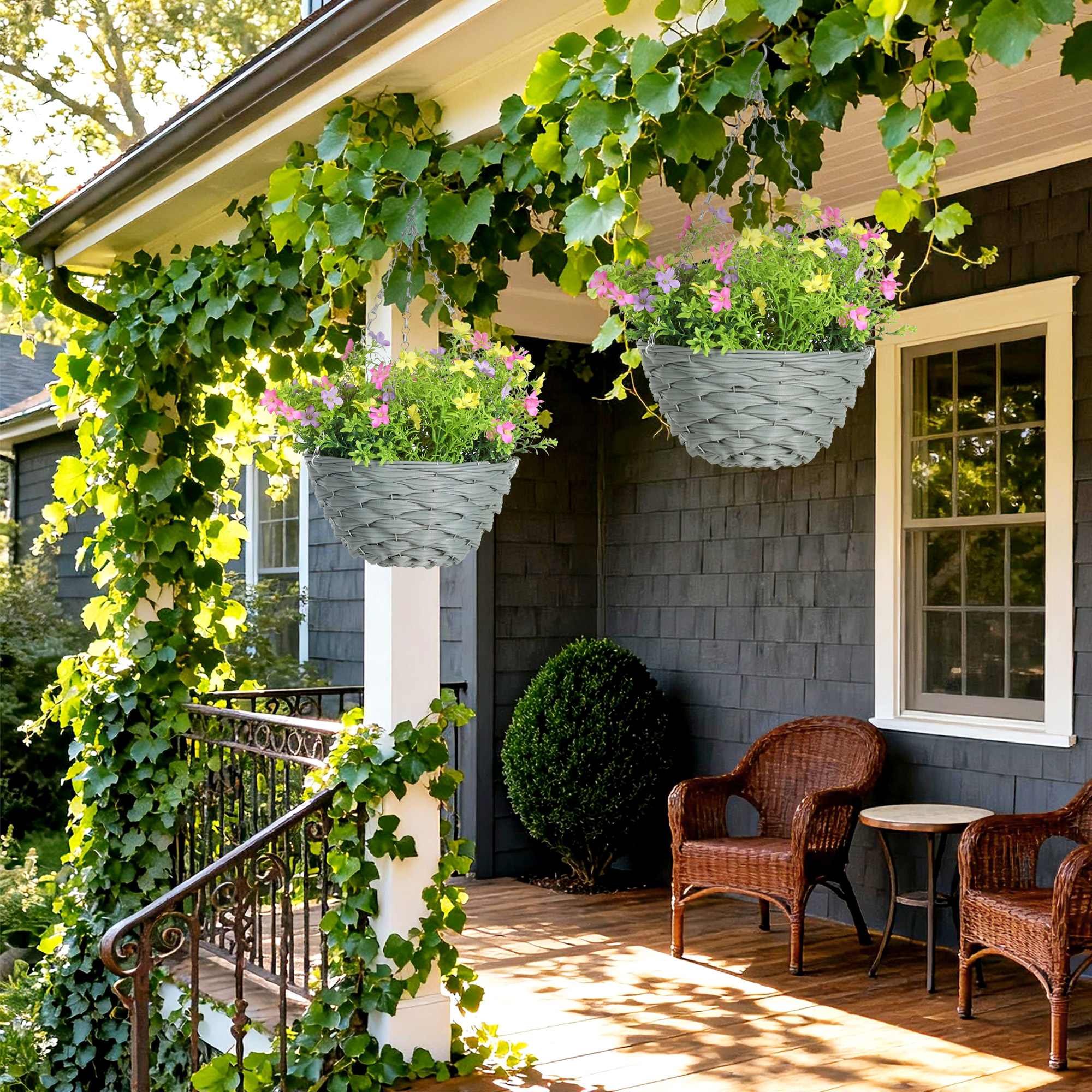 - Enjoy two lush hanging baskets, each filled with 75 vibrant flowers