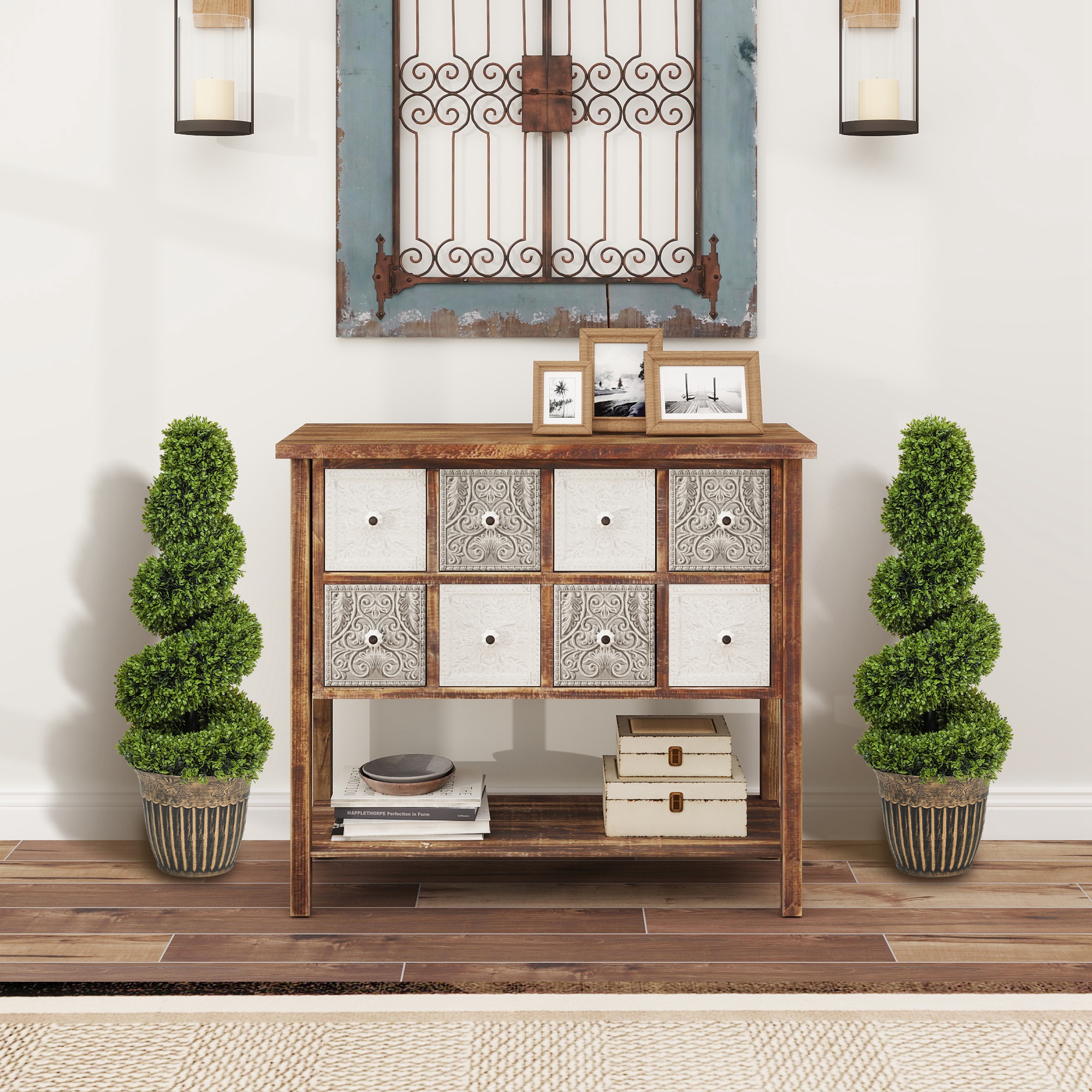 - Set of two. Beautiful spiral boxwood trees design plant