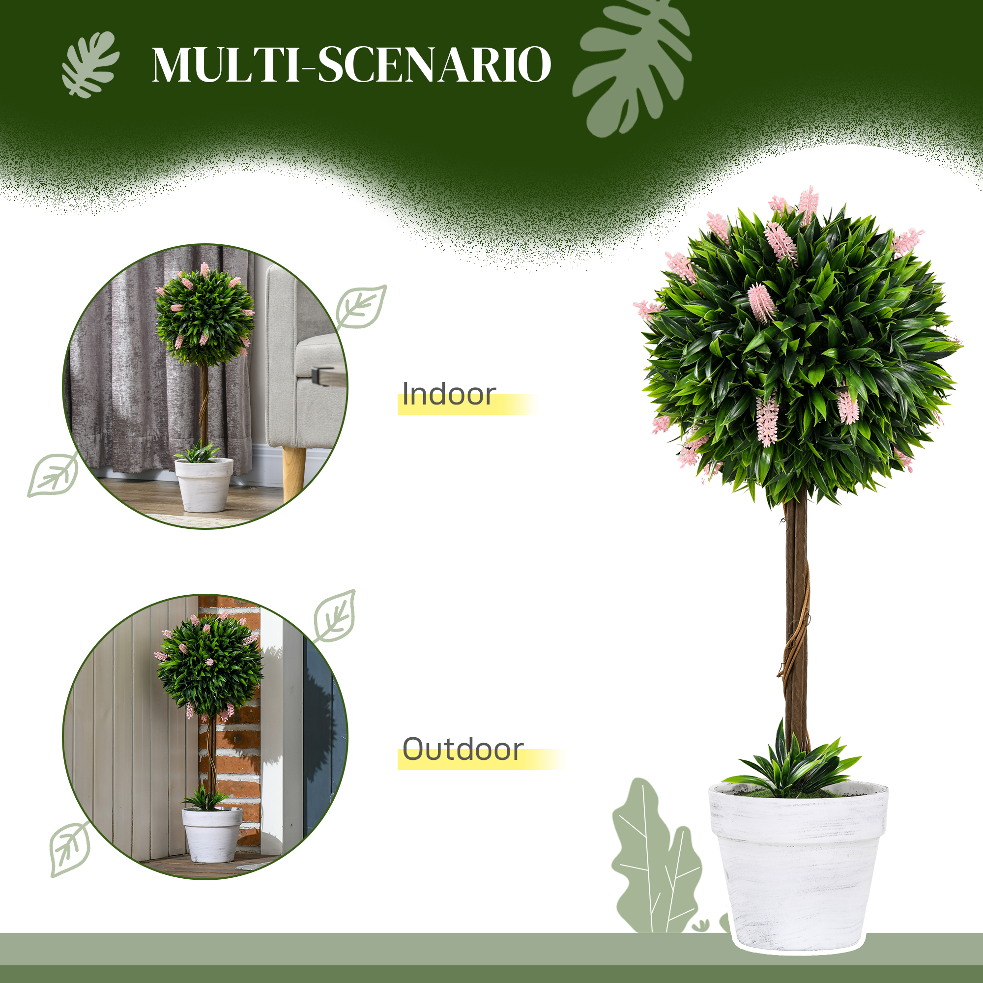 Want to grow green plants but can't keep them always green? Our faux plants are exactly what you need, it will stay green for many years without trimming and shaping. No watering, no fertilization, no worries when travelling. Realistic-looking leaves create a natural atmosphere for your roomand low maintenance is needed. Come pre-potted, those indoor plants are delivered ready to useand goes well with any kind of décor, great for indoor and outdoor spaces.
