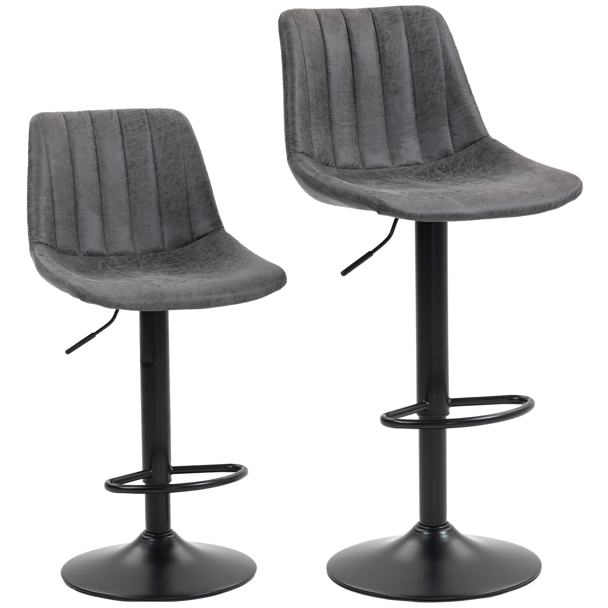 Both these HOMCOM breakfast bar stools are adjustable in height, with the 360° tub seat - easy and comfortable for your kitchen and beyond. The powder coated metal frame means a strong core., with a round base for balance; the rubber anti-slip ring gently protects the floor. Comes in a set of two kitchen stools for an easy matching look.