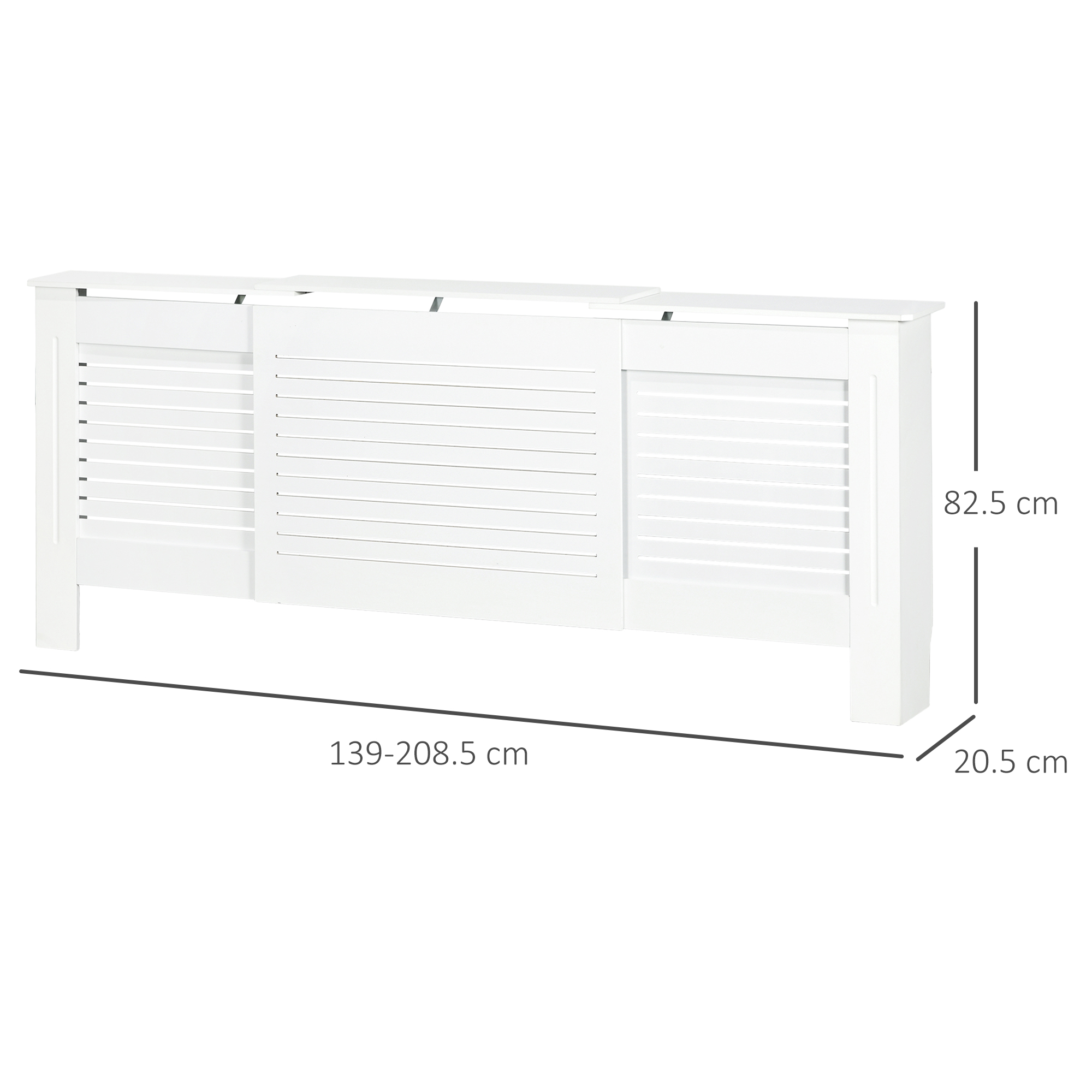 The HOMCOM set of two modern radiator covers enhances any room with its sleek, contemporary design. Made from white-painted MDF, it's easy to assemble and install with no finishing required. Covering hot radiator surfaces provides safety for your family. The adjustable length fits various radiator sizes, while the slatted design ensures efficient airflow and heat distribution. A stylish and practical addition to any home or office.