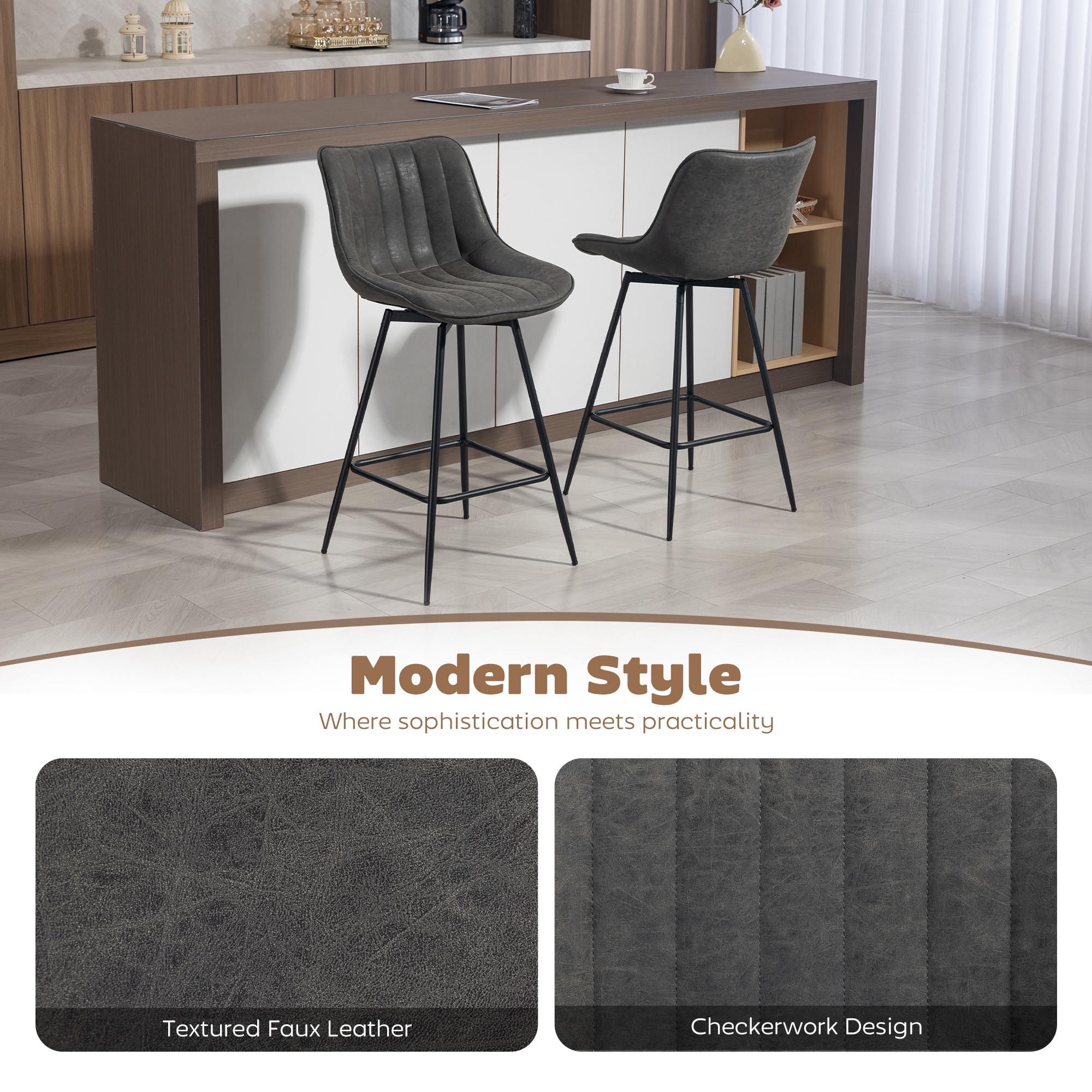 - Textured PU leather and channel stitching design add a chic, modern touch