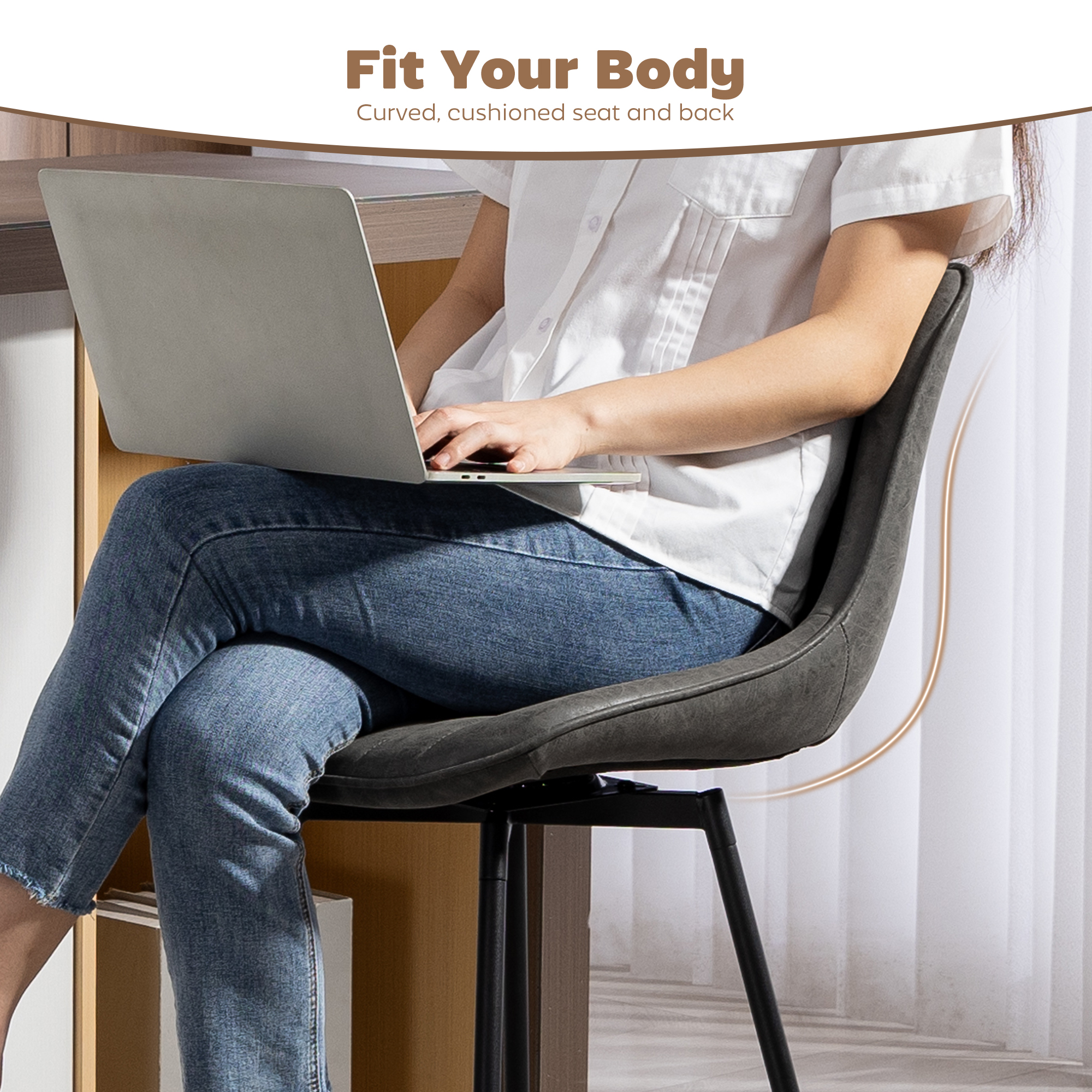 Tired of your kitchen island feeling disconnected and your seating uncomfortable? Conversations become stiff when everyone faces forward, and you cut chats short due to discomfort. The HOMCOM bar stools transform your space. With a smooth 360-degree swivel, conversation flows freely. Curves lines invite you to relax, turning your counter into a sophisticated hub for connection. These kitchen stools redefine your home's social heart.