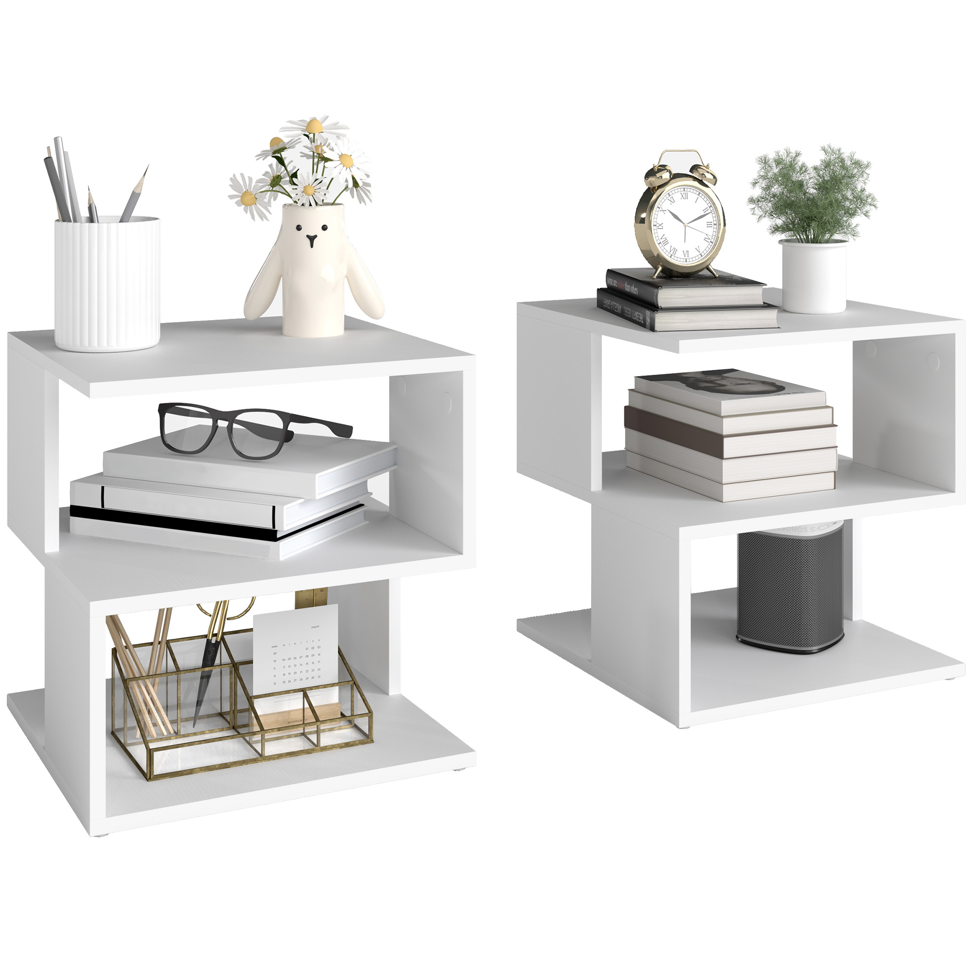 Invite unique style into your home with this side table from HOMCOM. Made from thick particle board in a sleek finish, it is crafted into a modern design which is a great focal point for living rooms and bedrooms and its two-tier open design makes it a great storage option for a wealth of possessions. With a smooth surface finish, it is easy to clean and maintain, making it great for those with busy lifestyles.