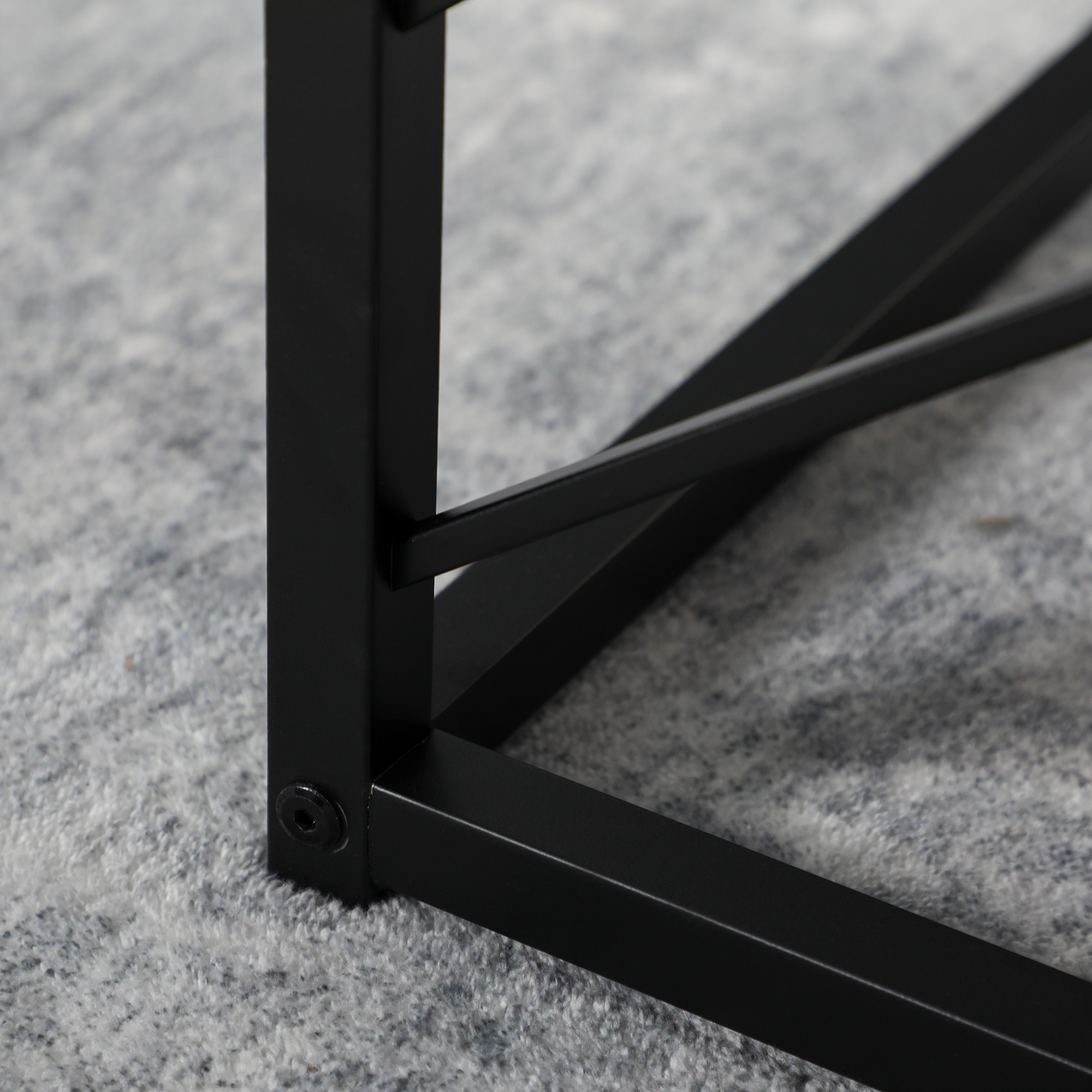 Three times simple, everyday beauty for your living space with this stacking coffee table set from HOMCOM. Consisting of a large, a medium and a smaller sized table, each table is made using a black metal frame for a stable and durable core. The frames, made from metal for strength, come with a criss-cross design on the side for a point of difference. And when done, you can stack them neatly together.