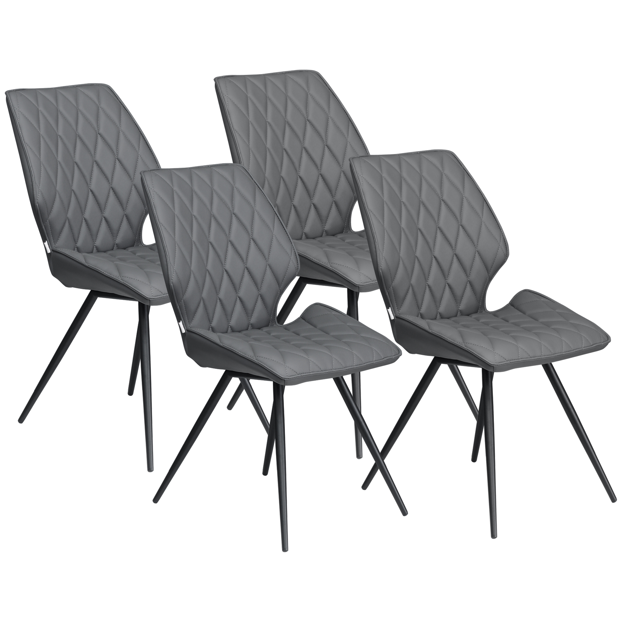 These HOMCOM dining room chairs set give you a comfortable - and supportive - spot to dine in. A steel base for plenty of support. The seats are filled with padded for comfort, with the tall backs supporting you. Wrapped in faux leather upholstery for style.