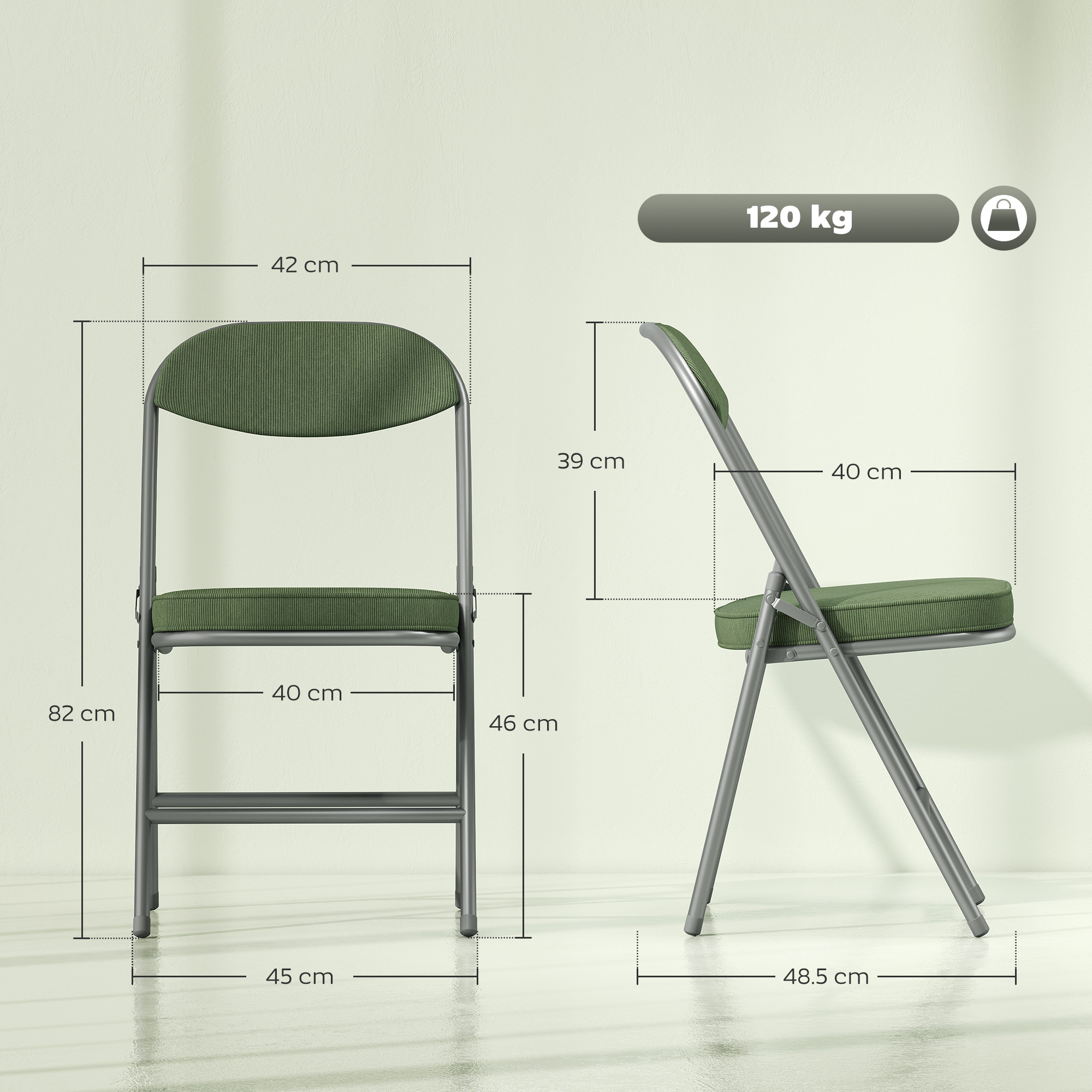 Portable, comfortable and stylish - this set of four HOMCOM folding chairs are the kind you'll actually want to sit on. Using steel for a strong and supportive frame - made into a foldable design: these chairs are easy to store away and bring out whenever you need. The padded seat and back panel keep you comfortable, with corduroy upholstery for style. Great for use all over the home: dining room, lounge, study - and more.