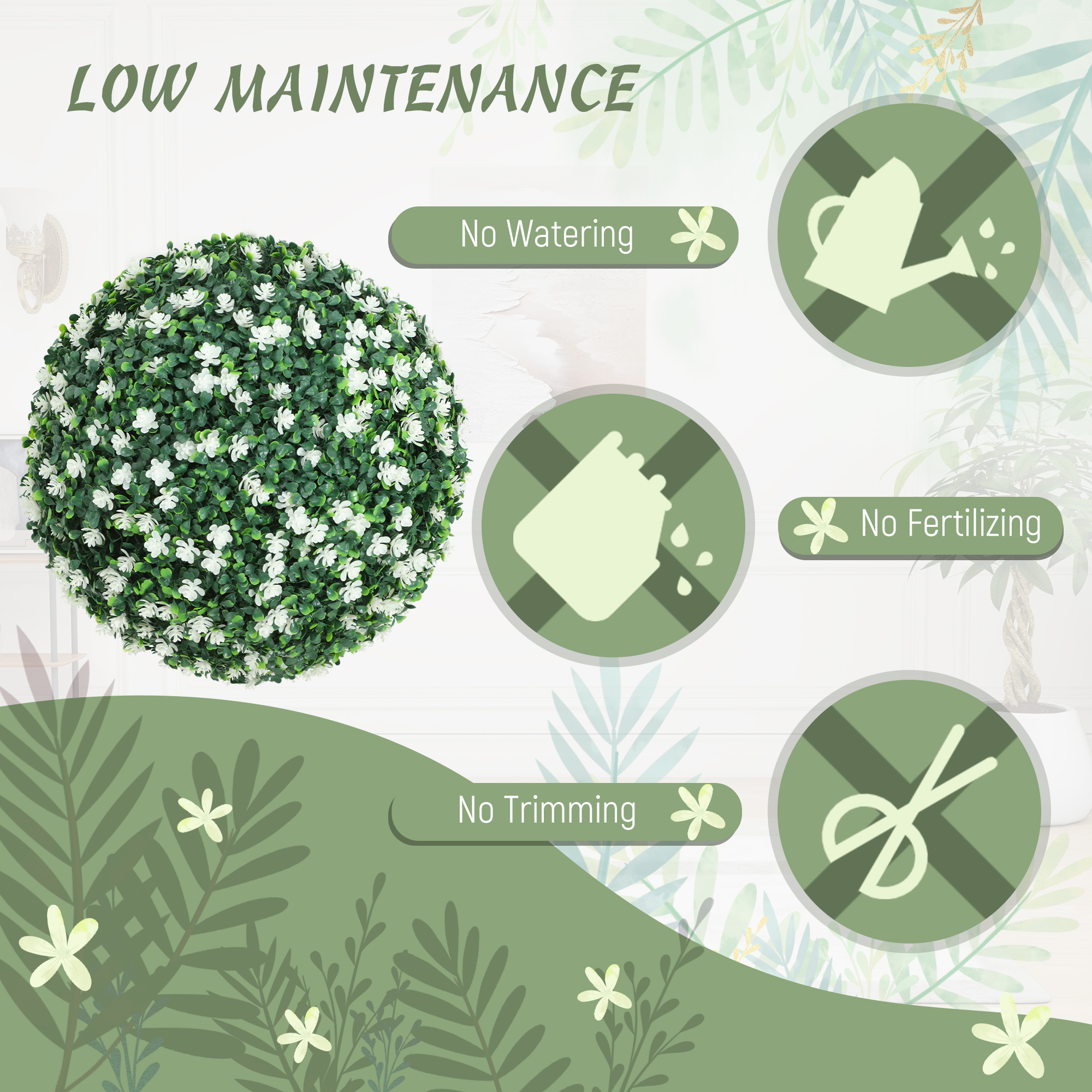 Striking greenery, all year round. This set of two HOMCOM boxwood balls come in a realistic design and finish - made from thick plastic they are super durable and can be wiped clean easily. In a set of two, you can use together for a matching look, or separately in different spots. Hang up with chains, or fix to a plant pot - the choice is yours to create a look you want.