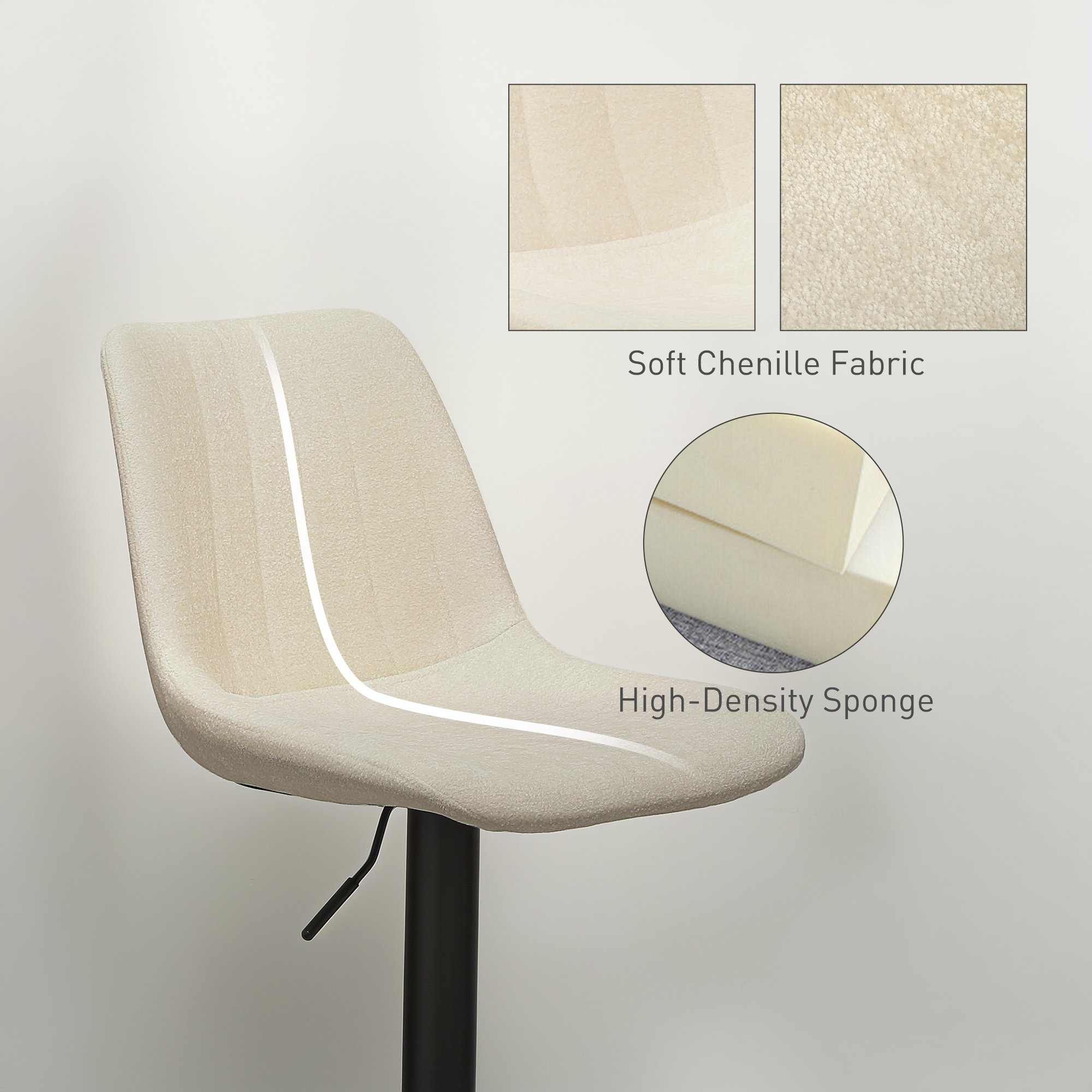 Both these HOMCOM breakfast bar stools are adjustable in height, with the 360° tub seat - easy and comfortable for your kitchen and beyond. The powder coated steel frame means a strong core., with a round base for balance; the rubber anti-slip ring gently protects the floor. Comes in a set of two kitchen stools for an easy matching look.