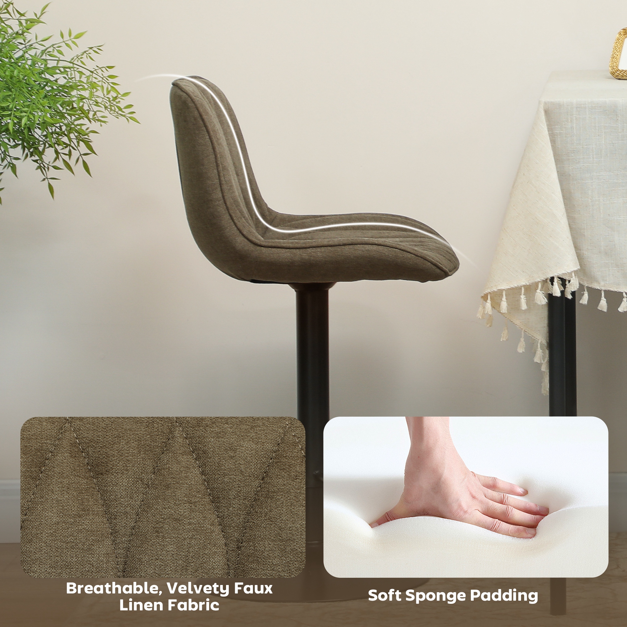 - Materials: Linen (100% Polyester), Steel, Sponge