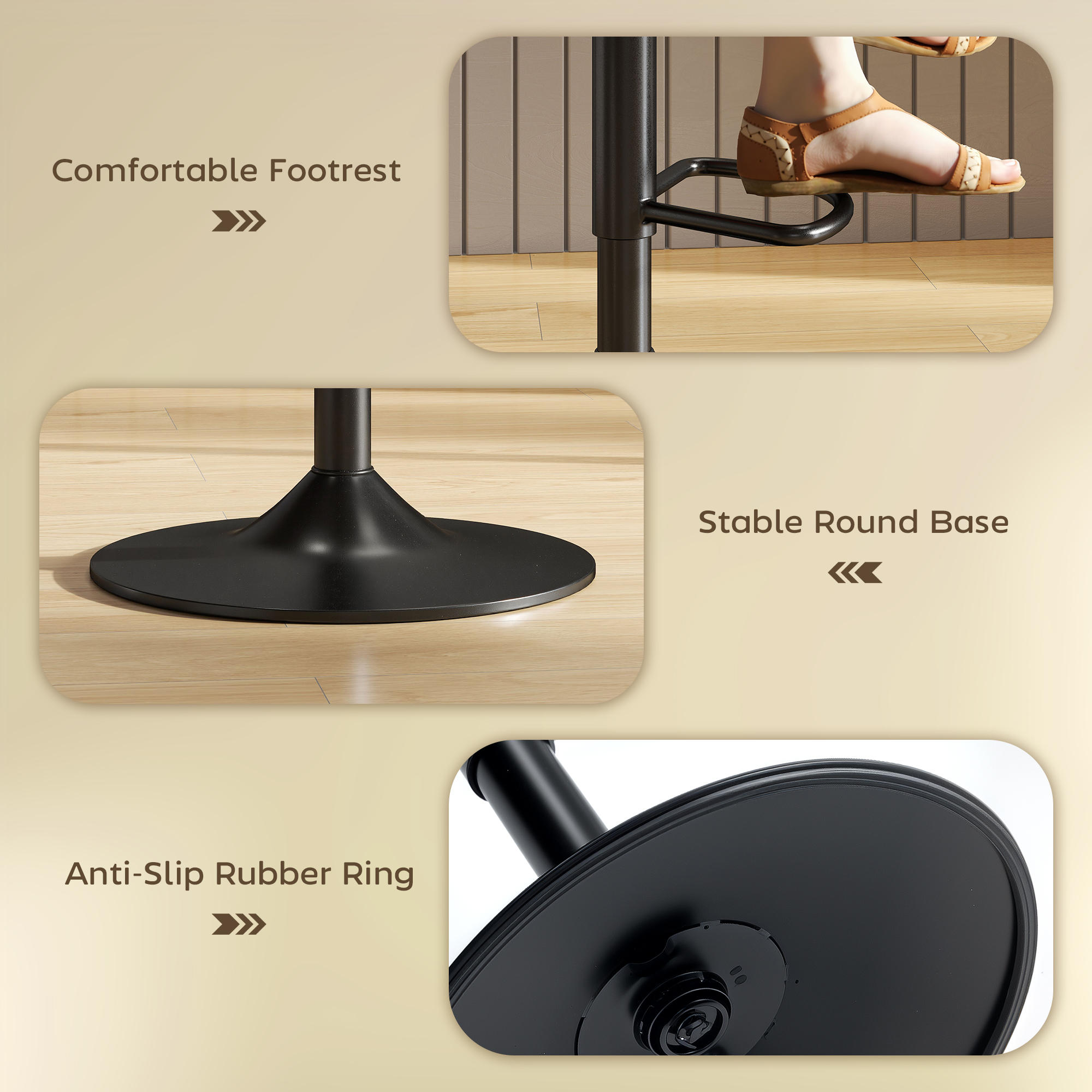 - Rubber ring prevents floor scratches and reduces noise