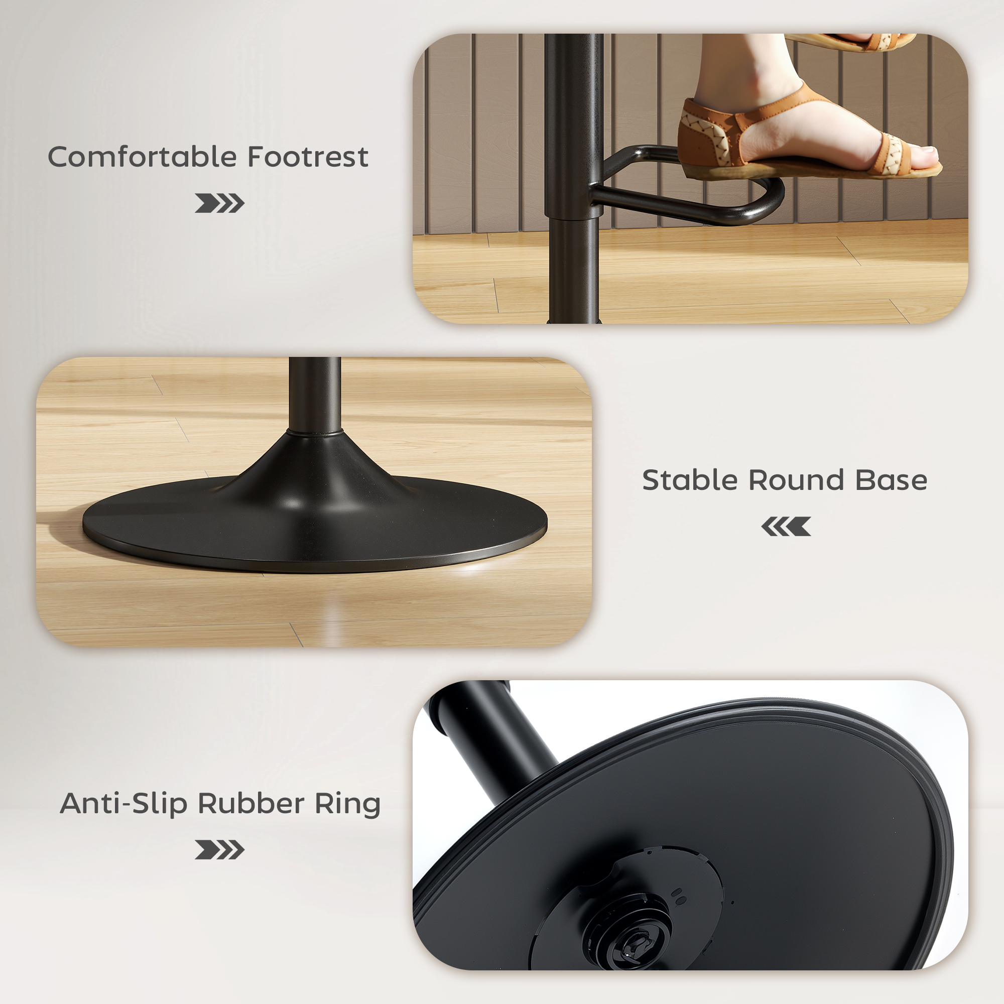 - Rubber ring prevents floor scratches and reduces noise