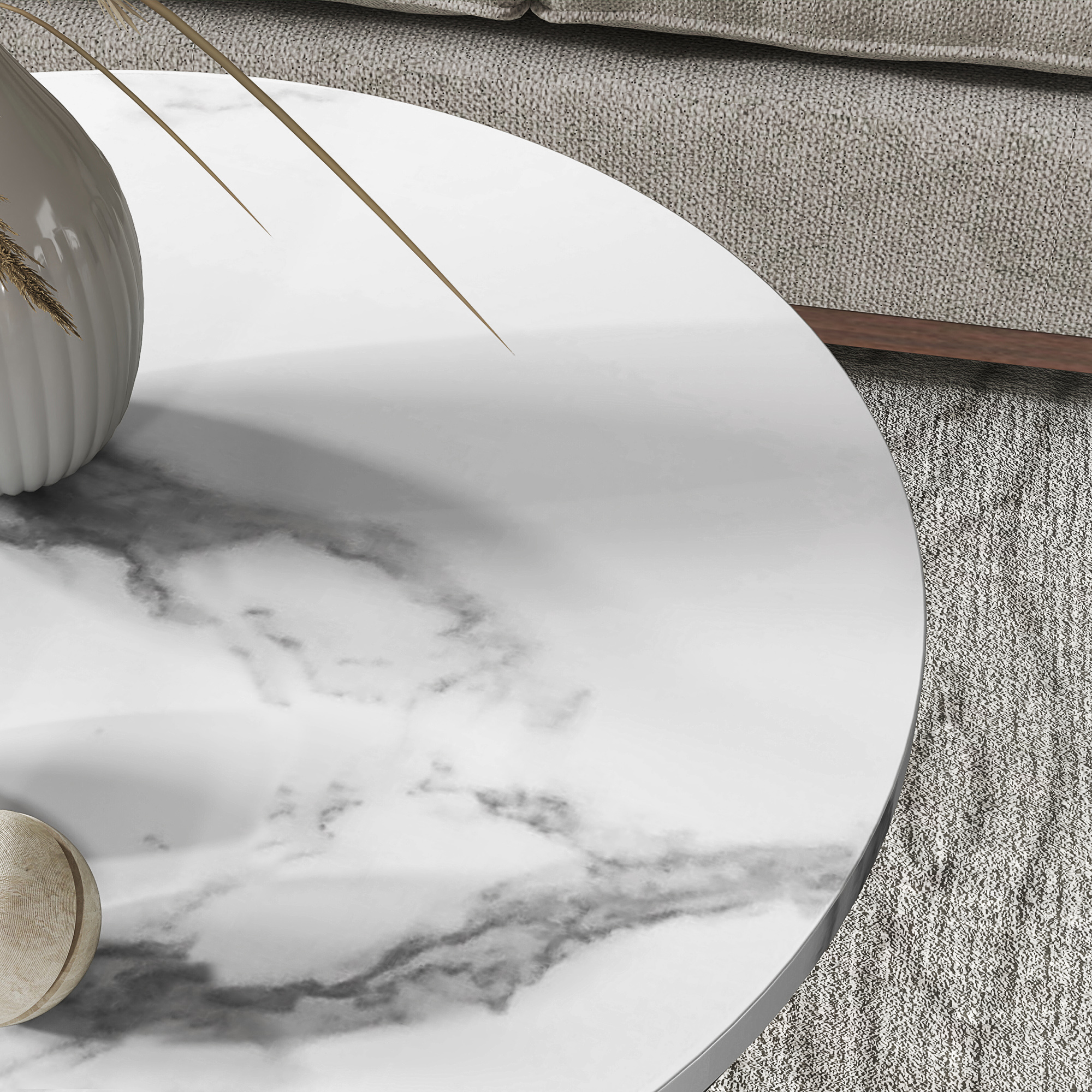 - Marble-effect tabletops, with gold-tone legs for an elegant look
