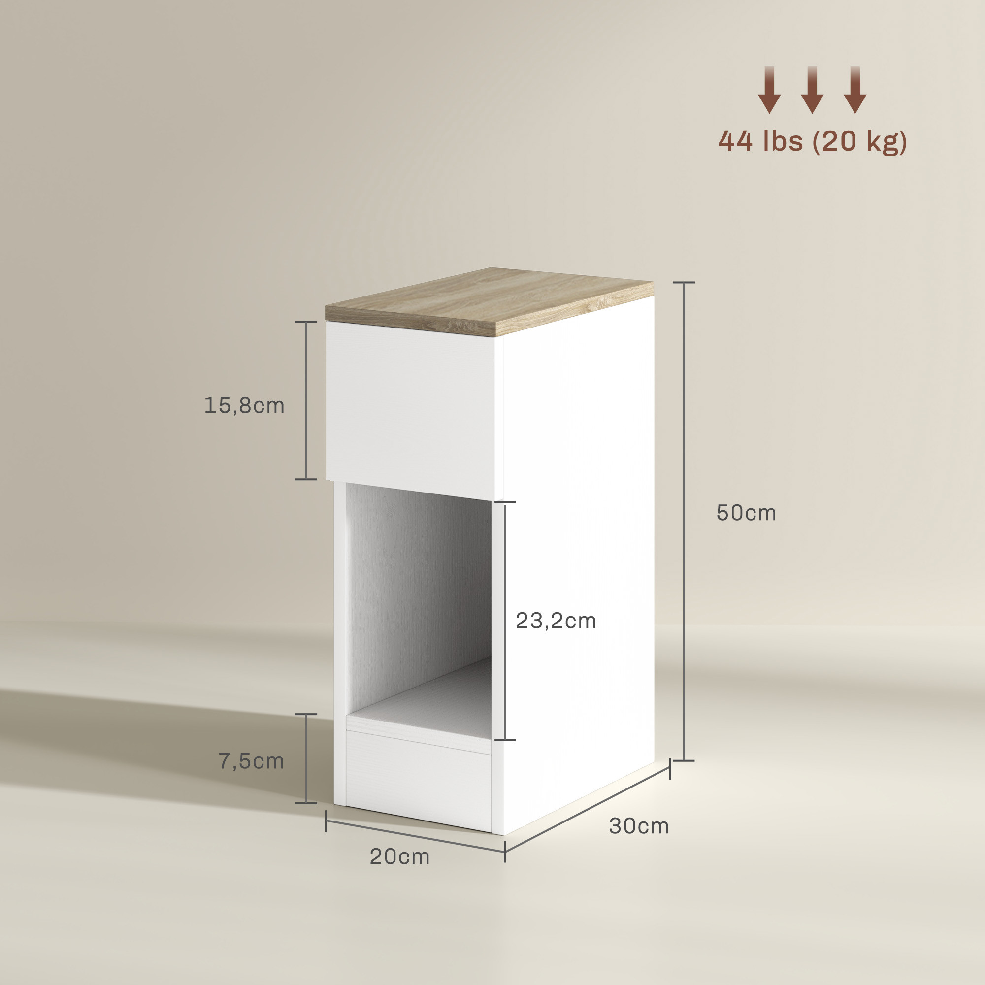 Thanks to the slim design of these two HOMCOM bedside tables, it's easy to maximise storage in your home and beyond. The simple design in white, with wood-effect tops makes these versatile pieces which work well in plenty of spaces, for plenty of different needs - bedside tables, side tables, or even as accent pieces. With a bottom shelf, drawer and flat top on both, there's also storage room to keep your space tidy and organised.