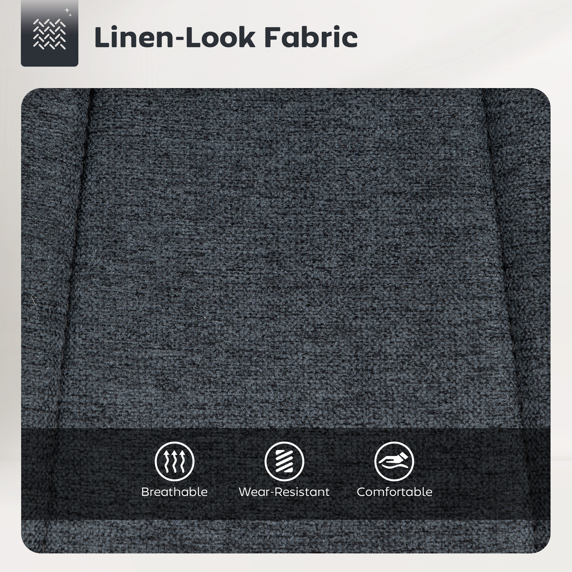 - High-density sponge filling is comfortable, with smooth and forever-stylish linen-look upholstery. Both are flame-retardant