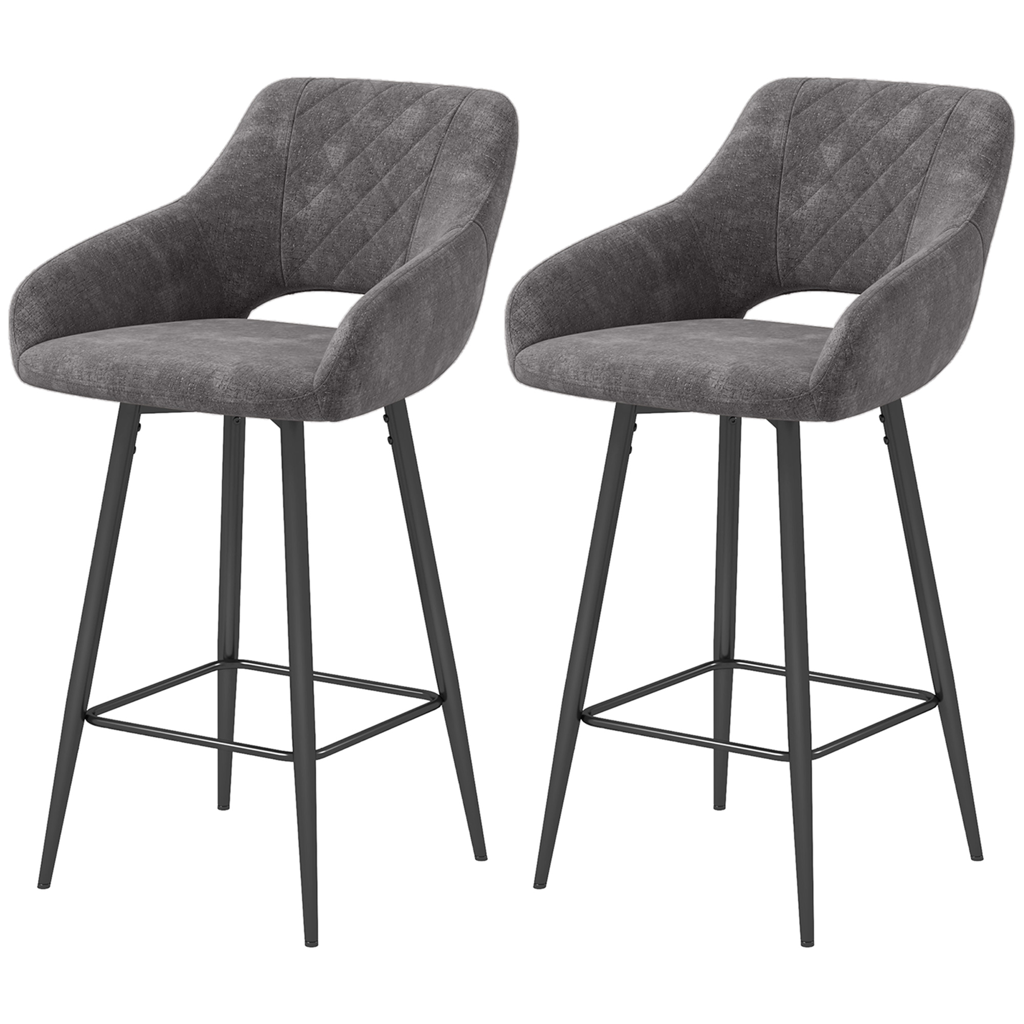 These two perfectly plush bar stools with backs, from HOMCOM, will sprinkle just the right amount of elegance into your home. The tub-shaped seats with high backs and armrests give you plenty of sitting room, wrapped in beautiful velvet-feel upholstery; paired with the padded seats, these stools for kitchen counter are very comfortable. They're fitted with metal bases for strong support - the bottom bars give the lower body a place to hold itself.