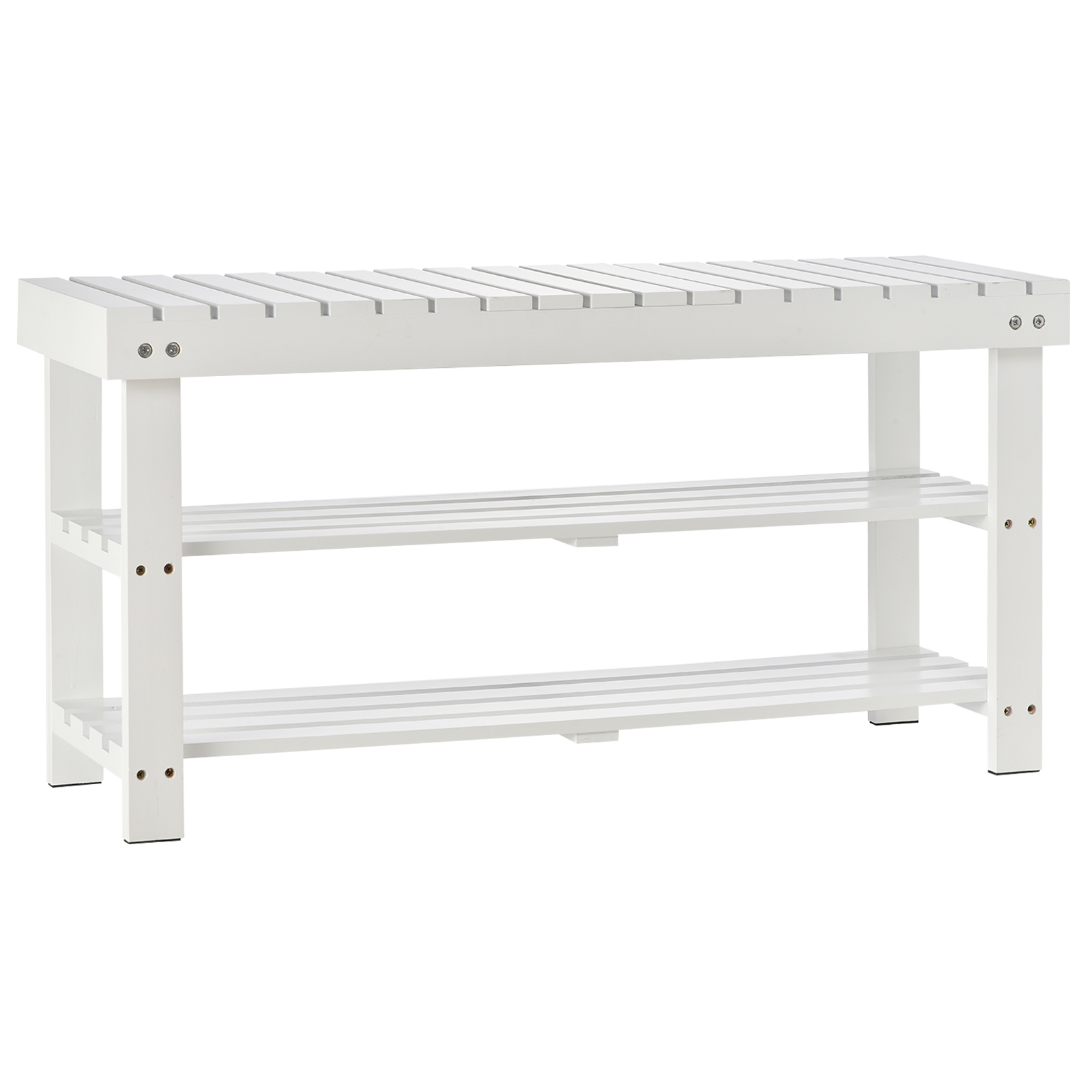 It's time to organise your shoes and boots with this cabinet from HOMCOM. The simple and modern look will fit any decor of your room. Crafted from solid wood and MDF board, this unit is durable for everyday use, with its open design over three shelves ensuring easy storage, whilst allowing your shoes to aerate for hygiene. A small concealed compartment on the top shelf allows storage of shoe accessories, keys etc. Finished with non-slip feet for balance and floor protection.