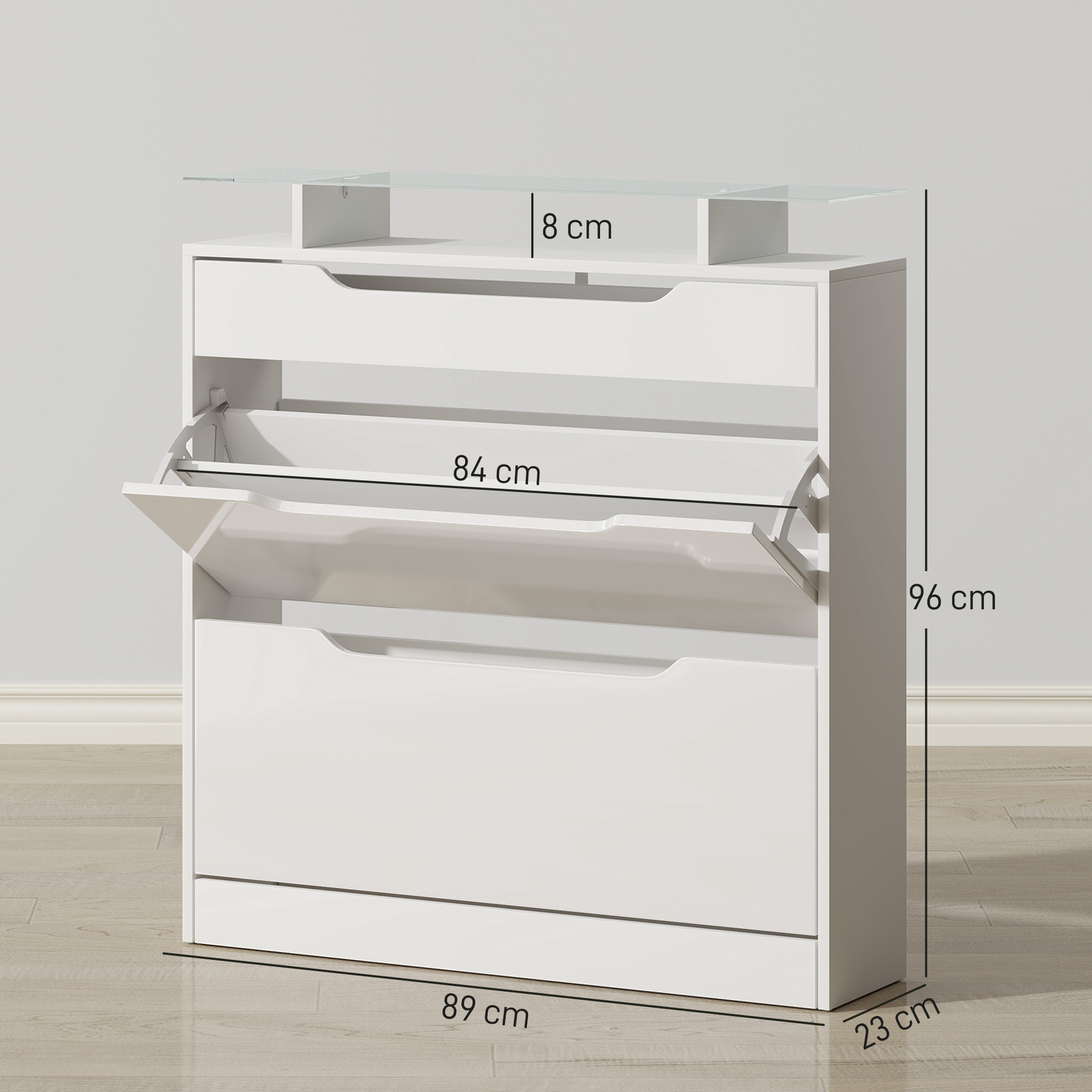 - Flip Drawer Size: 84W x 20D x 9H cm,