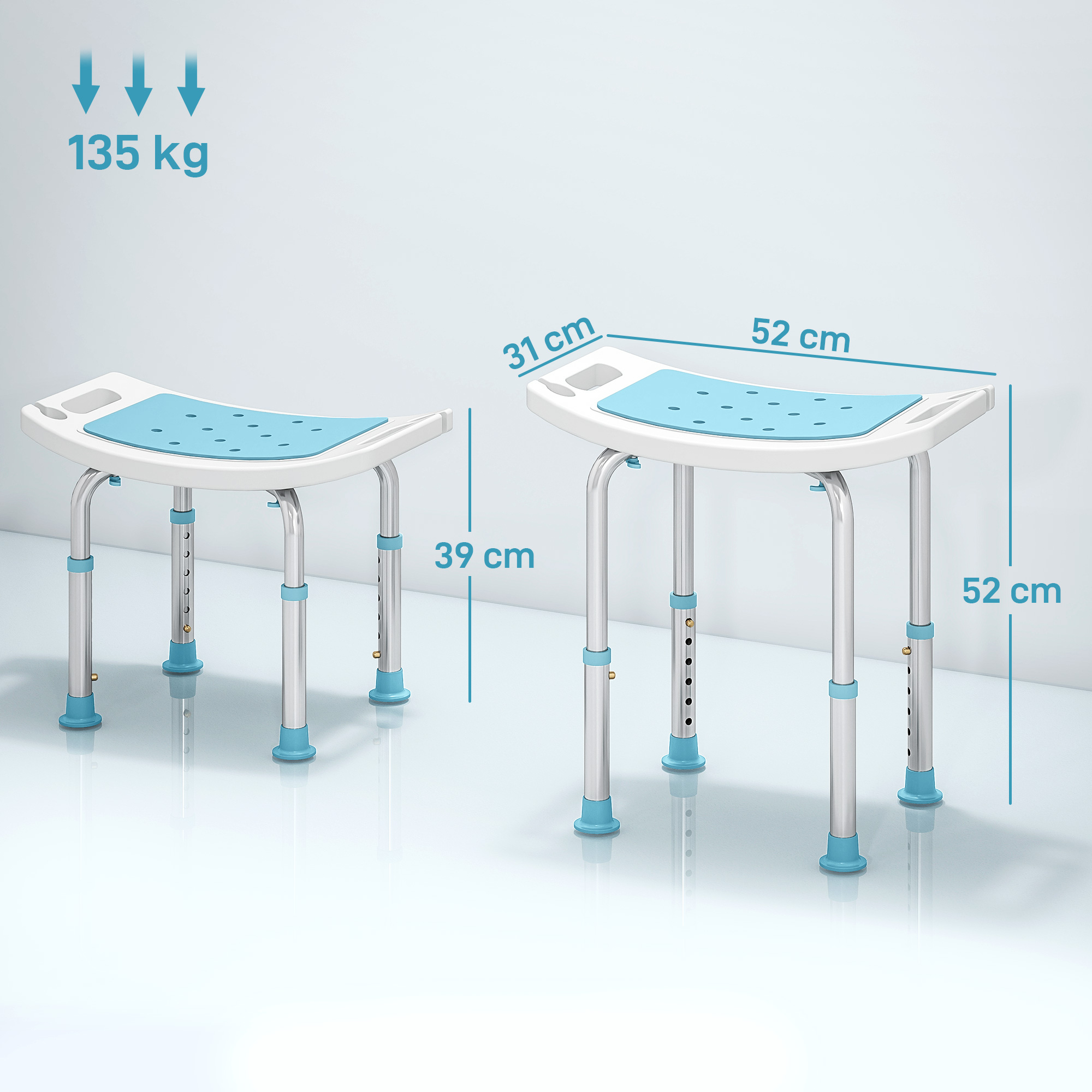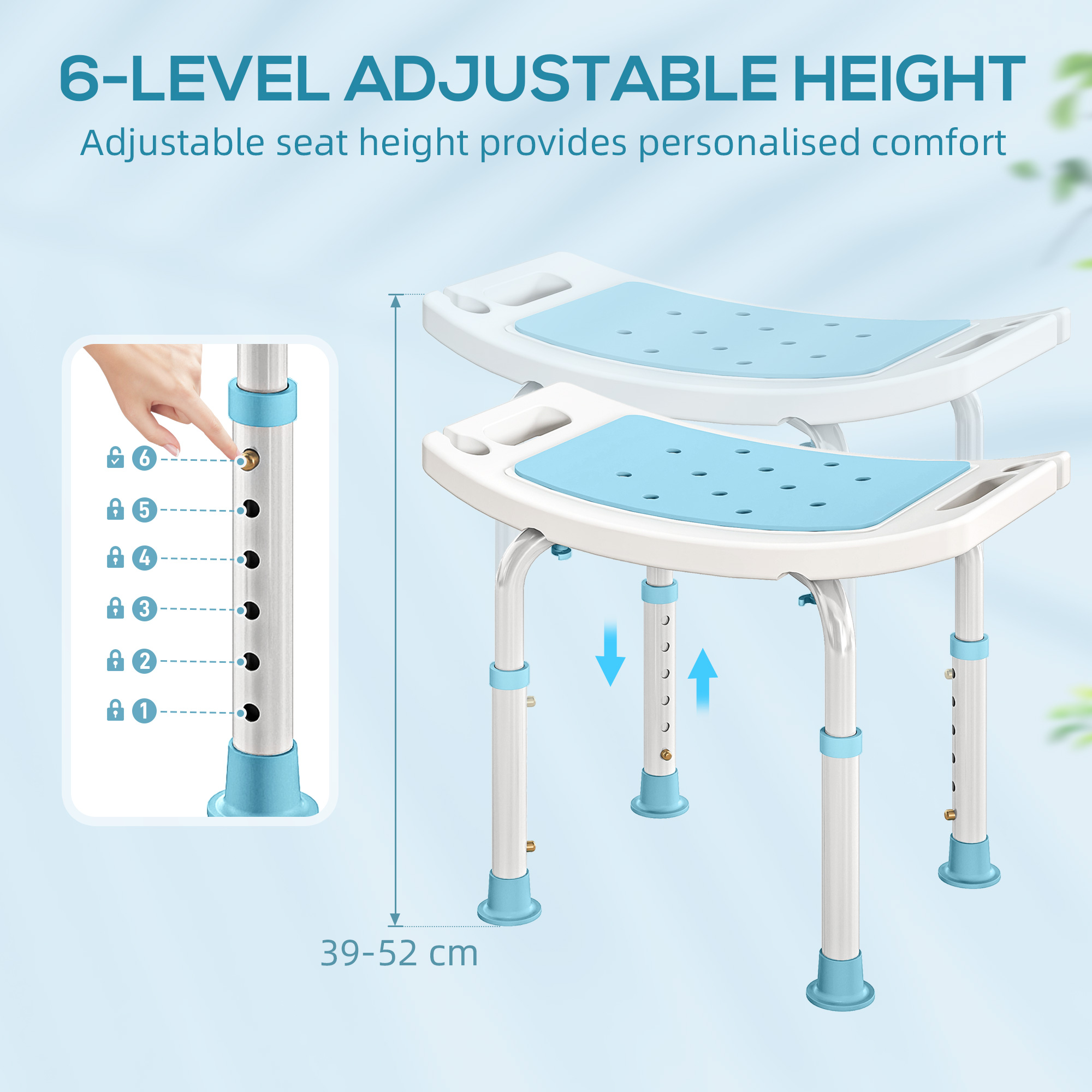 Make showering and bath times easier for those who require extra assistance, thanks to this bath chair from HOMCOM. With its aluminium frame for strength and rust resistance, this bath chair has four legs adjustable to six heights for safe and comfortable use. On the top, a slightly curved oblong seat is placed, with a small padded cushion for comfort and drainage holes for the water. It’s finished with four non-slip feet to keep it in place. A safe way to shower and bathe when alone.