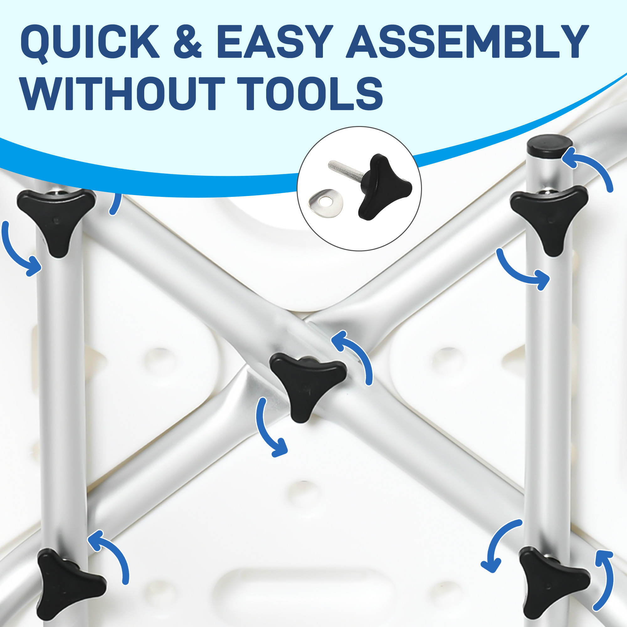 - Aluminium frame is strong, supports the user when seated