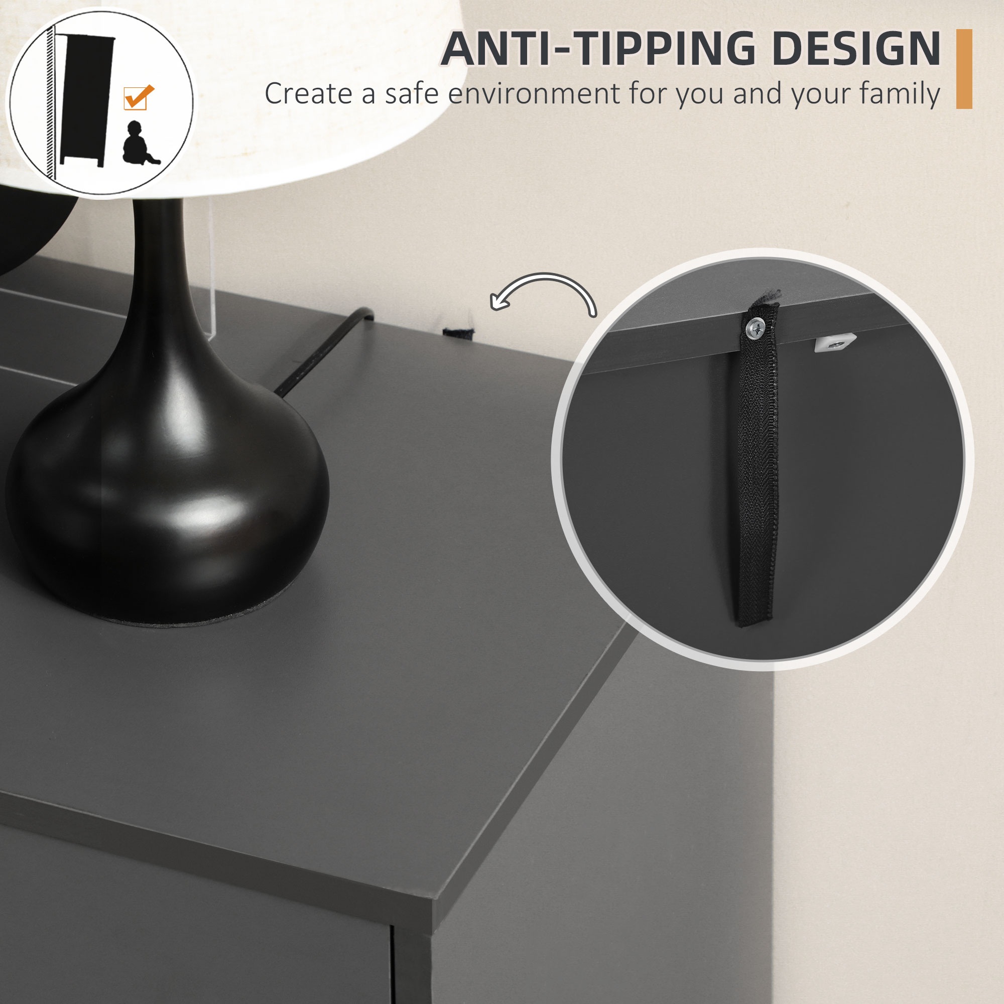 - Anti-tipping design straps included