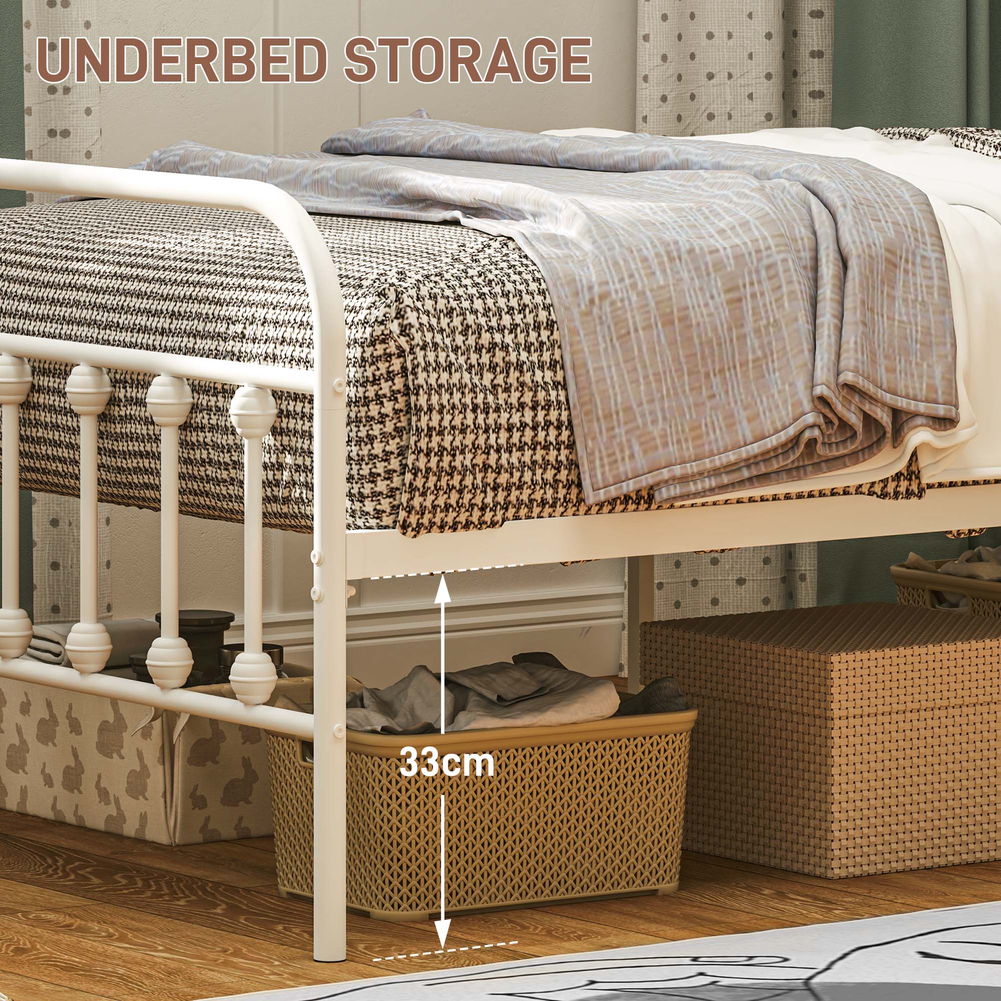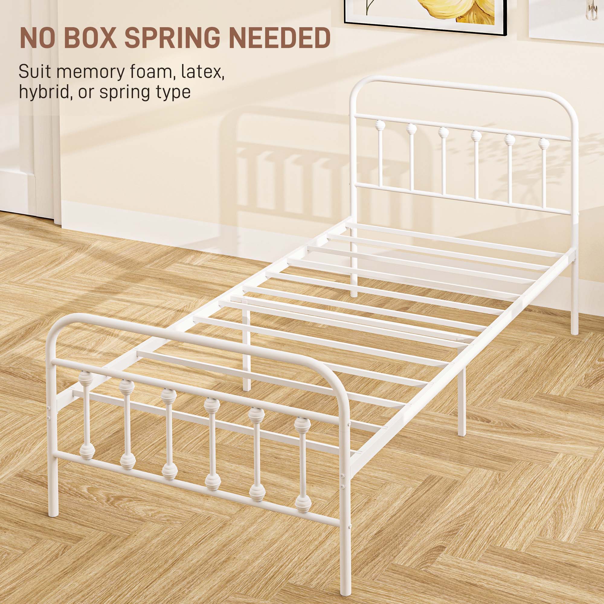 Sweet dreams made simple with this HOMCOM bed frame. The minimalistic metal frame makes it a versatile piece, suitable for practically any room style. The single size is suitable for teenagers and adultsand holds a 90 x 190cm sized mattress. Made from powder coated steel, this frame is strong and supportive, with built-in slats to prevent squeaking. With a 33cm under-bed clearance, there's room underneath for discreetly keeping boxes - a tidier room!