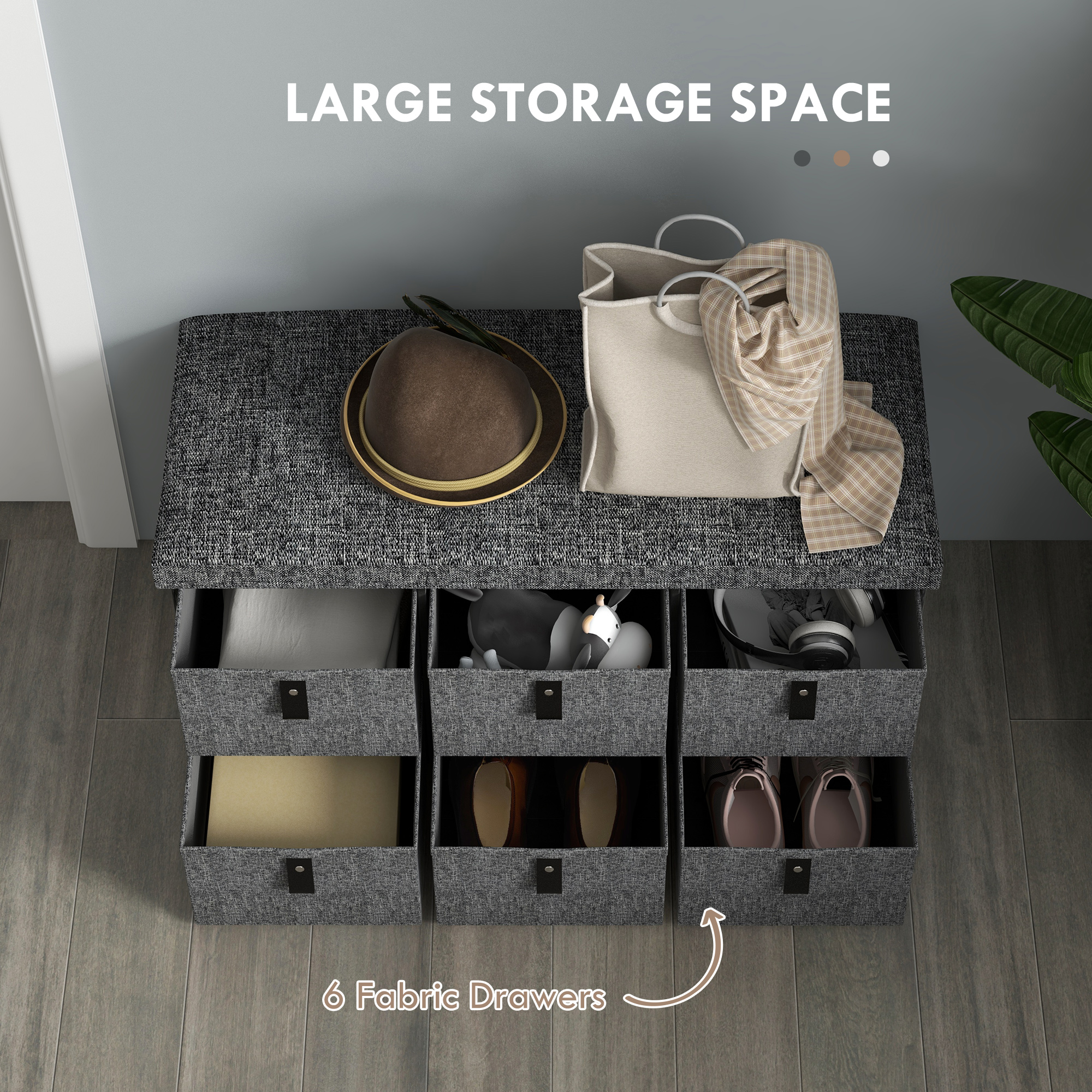 The simple and easy way to keep all footwear together, with this HOMCOM shoe bench. The frame is made from MDF for a strong, supportive core. The shoe storage unit features six drawers: in total it holds six shoe pairs (one pair per drawer). The top is padded to allow you to sit down comfortably when taking shoes off and putting them on. A minimalistic must-have piece, suitable for plenty of home and office spaces.